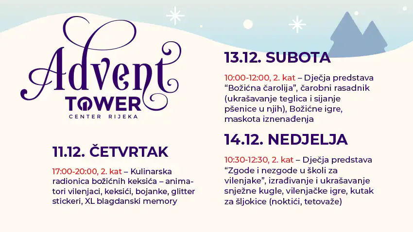 Adventski program u Toweru je ove godine prepun zabave i veselja, a mališani iz tjedna u tjedan uživaju u čaroliji blagdana uz kreativne radionice, dječje predstave i druženje s omiljenim likovima.