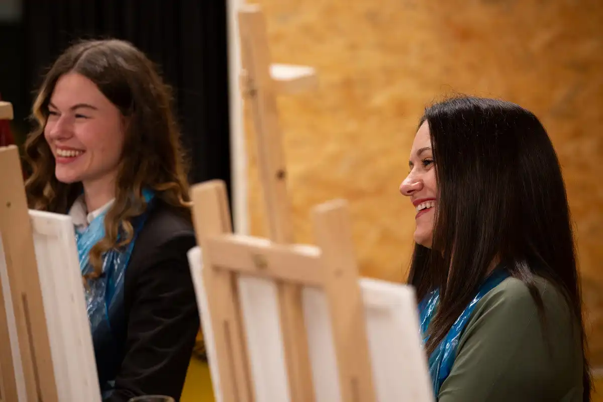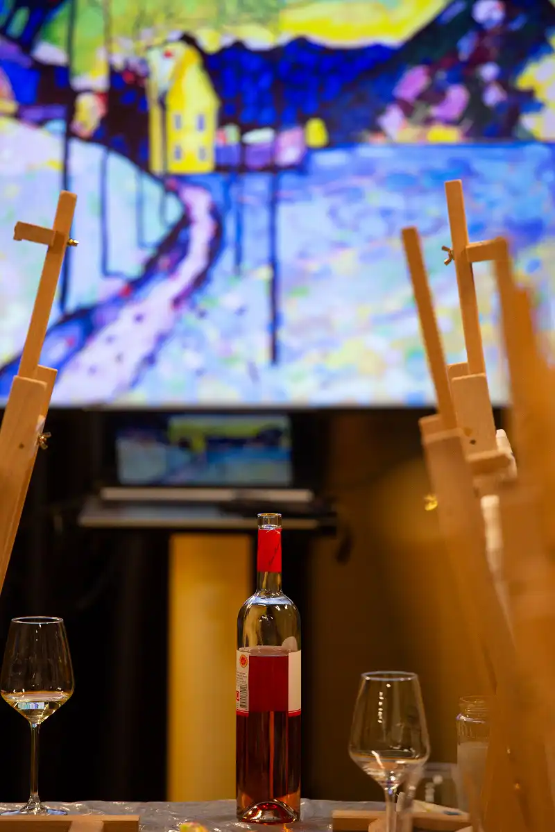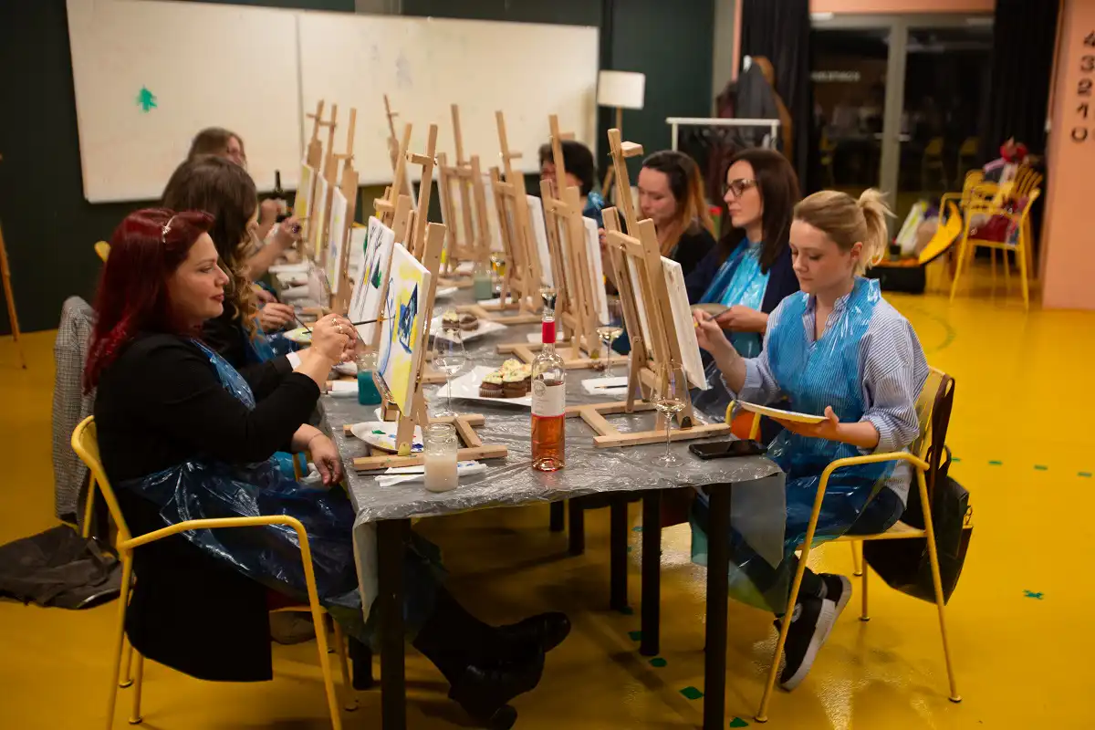 “Prvi put upoznali smo se bez djece koja su uvijek tu na našim druženjima i sastancima! Uživali smo u Slikanju uz vino vođeni akademskim slikarom Ivanom Tomečakom koji nam je približio sliku Kandinsky-a te nas vodio kroz prve korake slikanja. Sve je išlo lakše uz kapljicu kvalitetnog vina za koje je bila zadužena Kuća vina Ivan Katunar. Uživali smo u vinu Sansigot, Rose te u Muškatu.