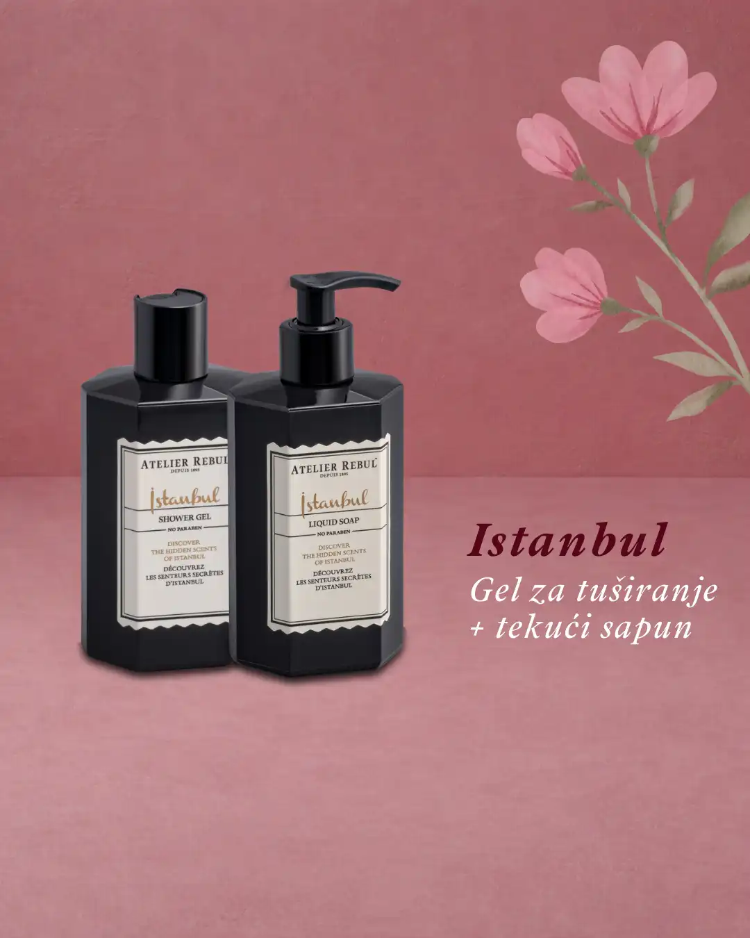 Ritual njege može se dodatno upotpuniti Istanbul gelom za tuširanje i Istanbul tekućim sapunom, dostupnima u prigodnom setu. Gel za tuširanje nježno čisti i omekšava kožu, dok dodatak aloe vere pruža intenzivnu hidrataciju, pretvarajući tuširanje u osjetilno iskustvo. Tekući sapun, inspiriran bogatstvom i toplinom Istanbula, svojim začinskim mirisom i bogatom formulom hrani i vlaži kožu bez isušivanja, čineći ga idealnim za svakodnevnu njegu ruku. Zajedno stvaraju cjelovit mirisni ritual koji unosi toplinu i profinjenost u svaki dom.