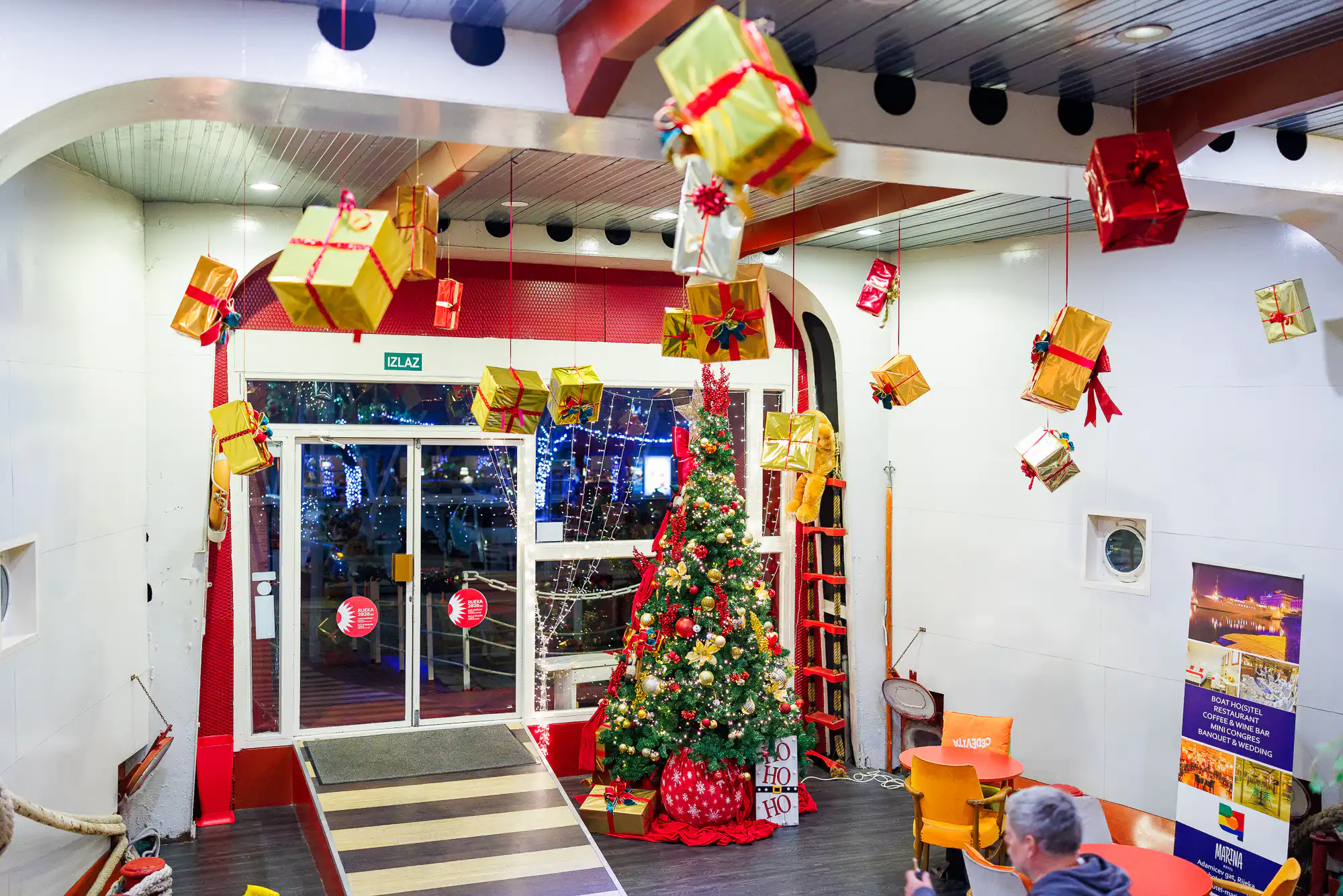 Brod ili hotel? Oboje! Riječki botel Marina jedinstven je objekt u Hrvatskoj. Nakon više od 70 godina plovidbe Marina je 2013. godine preuređena u prvi hrvatski botel (brod-hotel). Smještena je na Adamićevom gatu u centru Rijeke, svega par minuta hoda udaljena od centra grada (Korzo), autobusnog i željezničkog kolodvora, znamenite gradske tržnice, kazališta, kina, muzeja i galerija. Osim jedinstvenog brodskog ho(s)telskog smještaja na Marini možete ručati i večerati u restoranu ili predahnuti uz kavu ili piće na otvorenoj palubi ili se udobno smjestiti i čavrljati u lounge sobi.