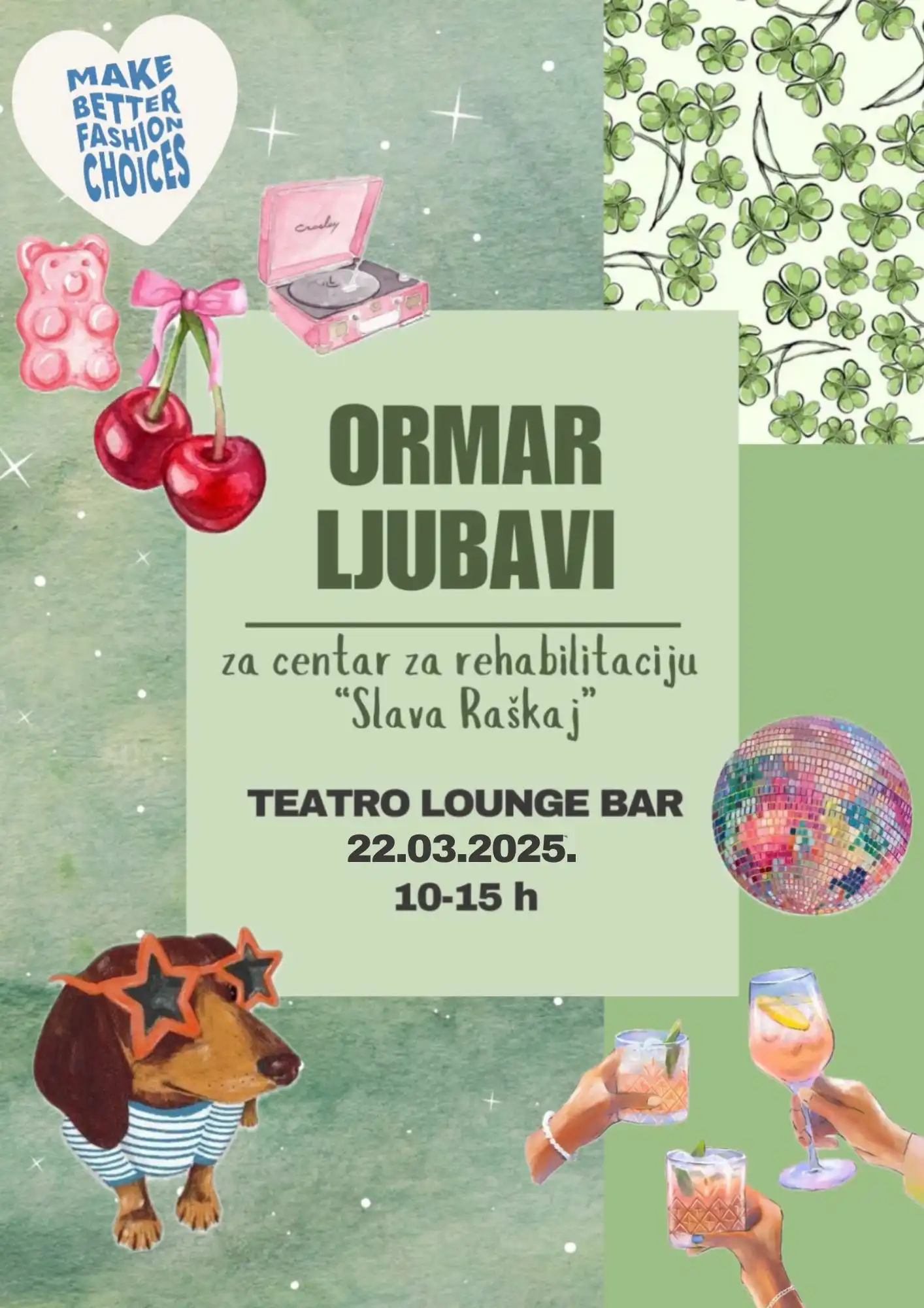Ormar ljubavi se održava 22.3 (subota) 10-15h na terasi Teatro Lounge Bara, a sav prikupljen prihod ide za centar za rehabilitaciju ”Slava Raškaj”, preostala odjeća bit će donirana kući utočišta za beskućnike Depaul.