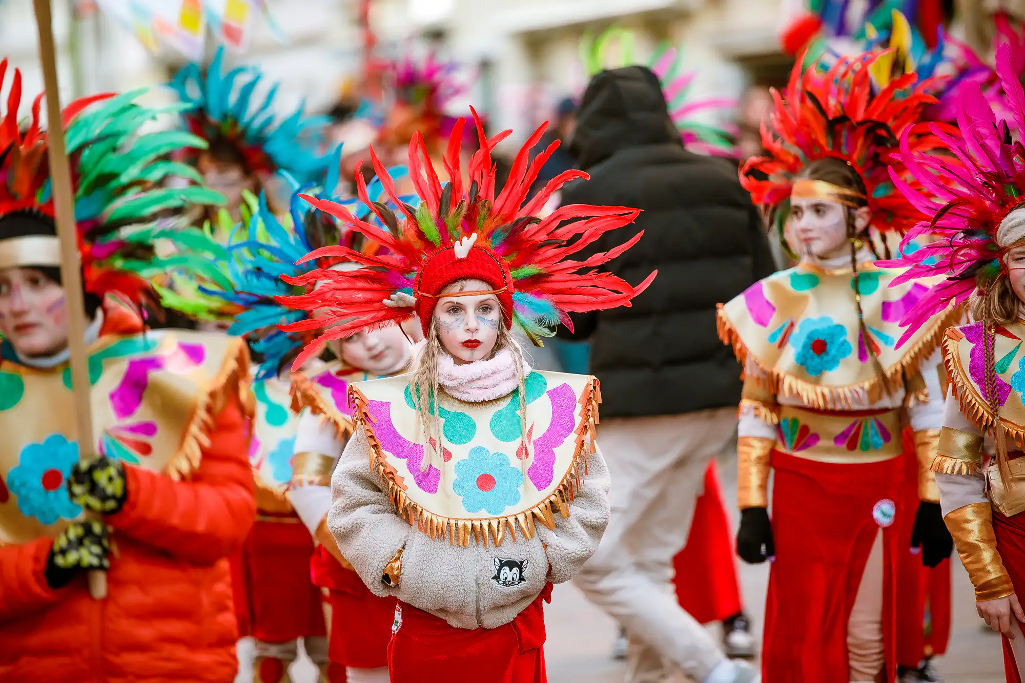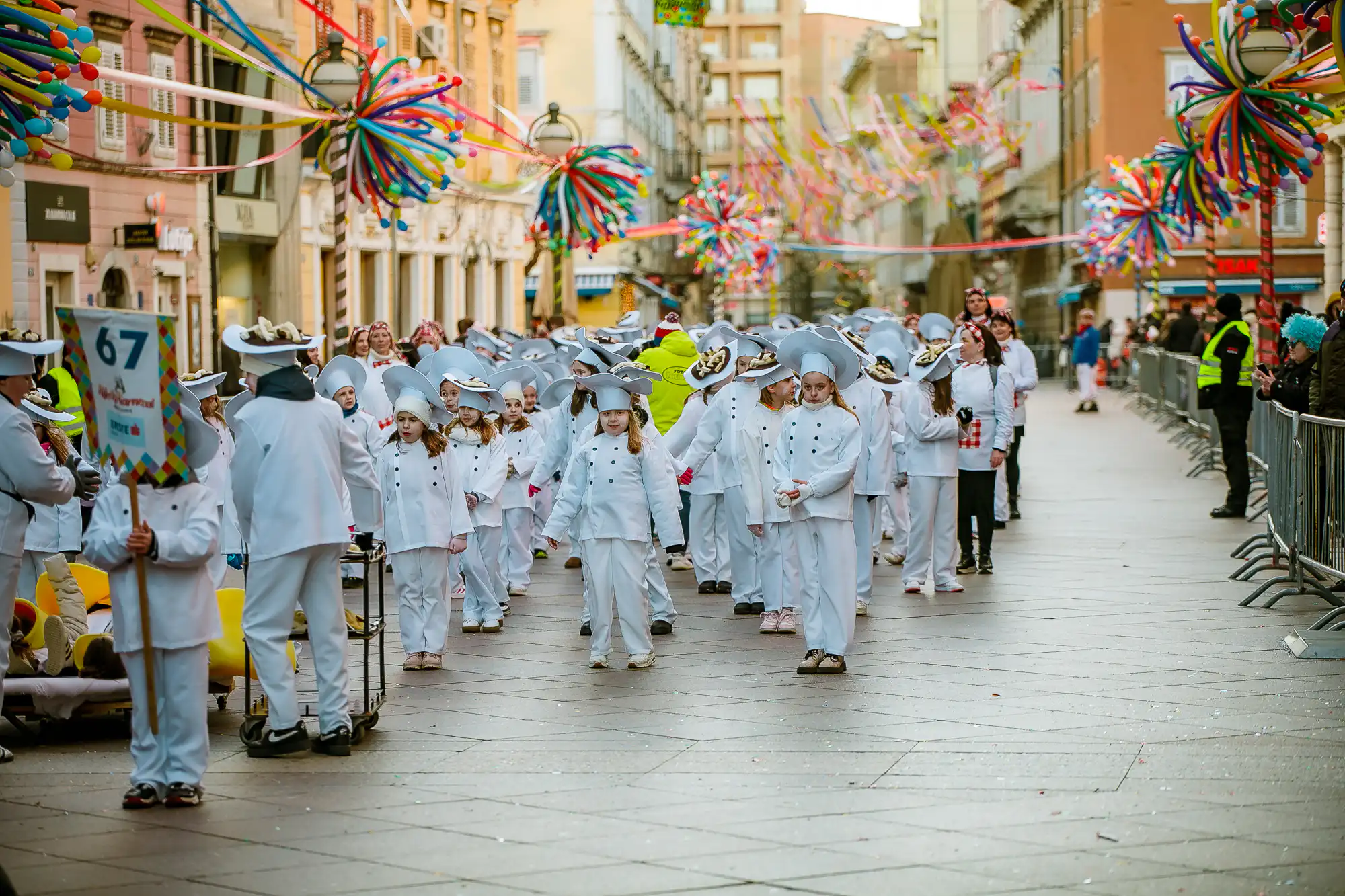 Povorka je krenula u 13 sati, s Gata Karoline Riječke, koju su tradicionalno predvodili Meštar Sandi, ovogodišnja Kraljica Riječkog karnevala Nora Marčelja i gradonačelnik Grada Rijeke Marko Filipović, a pridružili su im se Princ i Princeza Riječkog karnevala Niko i Daisy. Maškarana kolona prošla je Korzom sve do Export Delte gdje su se najmlađi zasladili krafnicama od čokolade i marmelade.