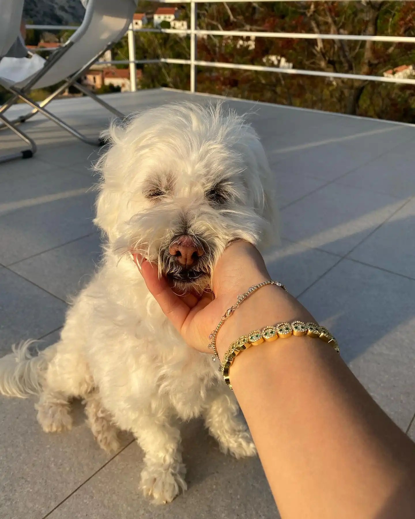 Bahrain inače nije baš ‘dog friendly’ jer psi ne smiju nigdje a i jako je vruće cijele godine tako da smo se odlučili da ju dovedemo u Hrvatsku kod moje bake kako bi imala bolji život i velik vrt. 2 godine nakon toga, i mi smo se preselili u Hrvatsku tako da smo opet zajedno. Lilo ima 8 godina!