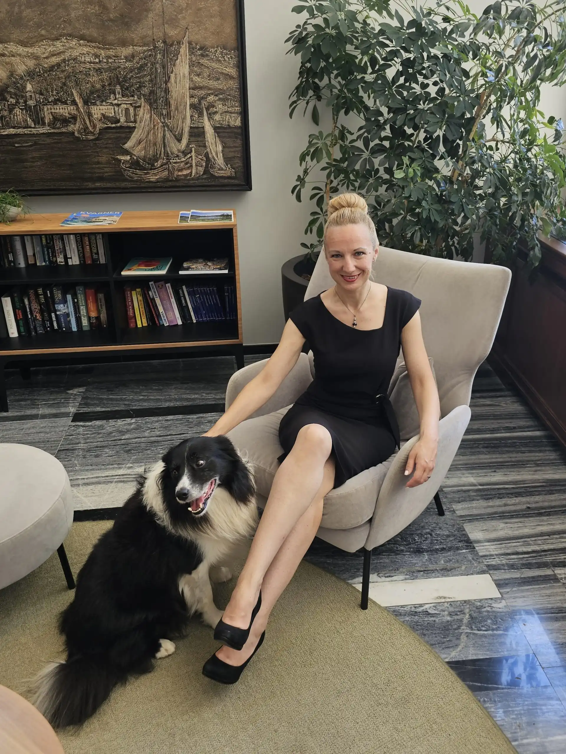Hahaha! 😊 Da, Caan je naš službeni kolega, i to s punim radnim vremenom! Osim što je s nama u uredu, redovito nas prati na sastancima, edukacijama, konferencijama i drugim poslovnim događanjima. Do sada se još nismo susreli s nekim kome bi smetao – naprotiv, svi ga obožavaju! To nam je iznimno važno jer smo mala firma, i bitno nam je da se svi osjećamo ugodno dok radimo. Posebno su zanimljiva iskustva s edukacija. Naime, nije tajna da većina ljudi ne voli GDPR – na edukacije često dolaze jer moraju, a ne zato što žele. Tu na scenu stupa Caan – njegovom prisutnošću ublažavamo tu barijeru između “moranja” i stvarnog interesa, pomažući polaznicima da se opuste i aktivnije sudjeluju. Najzabavniji trenuci su kada svi slušaju predavanje, a Caan iznenada promijeni položaj – u tom trenutku gotovo svi refleksno okrenu glave prema njemu! 😄 To uvijek izazove smijeh i razbije formalnu atmosferu, čime edukacija postane puno dinamičnija i ugodnija. Tko bi rekao da pas može biti važan faktor za uspješno usvajanje znanja o GDPR-u?!😄