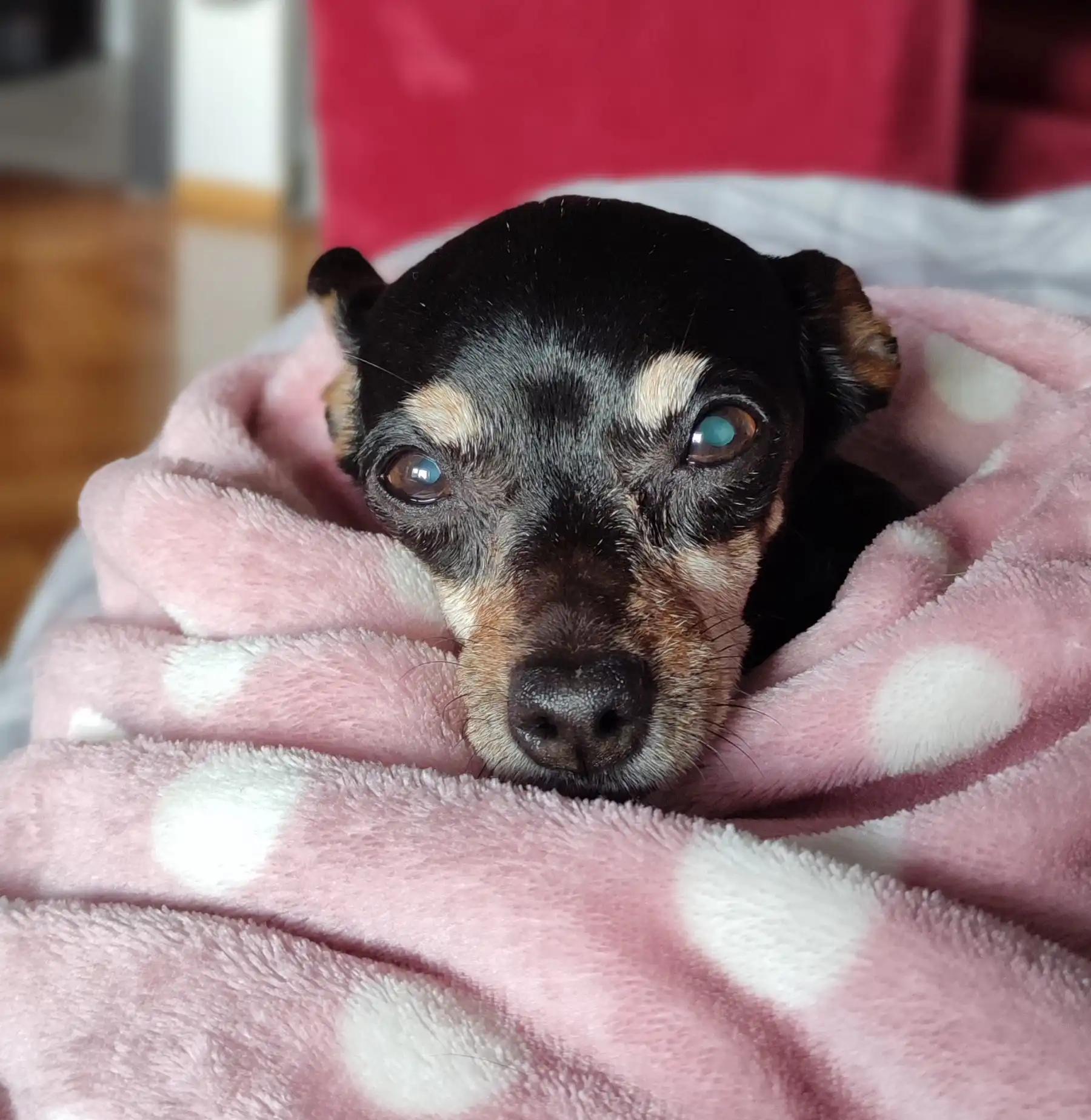 Sa sobom sam dovela Raa, ona je patuljasti pinč crne boje sa paležima i ima 14,5 godina.