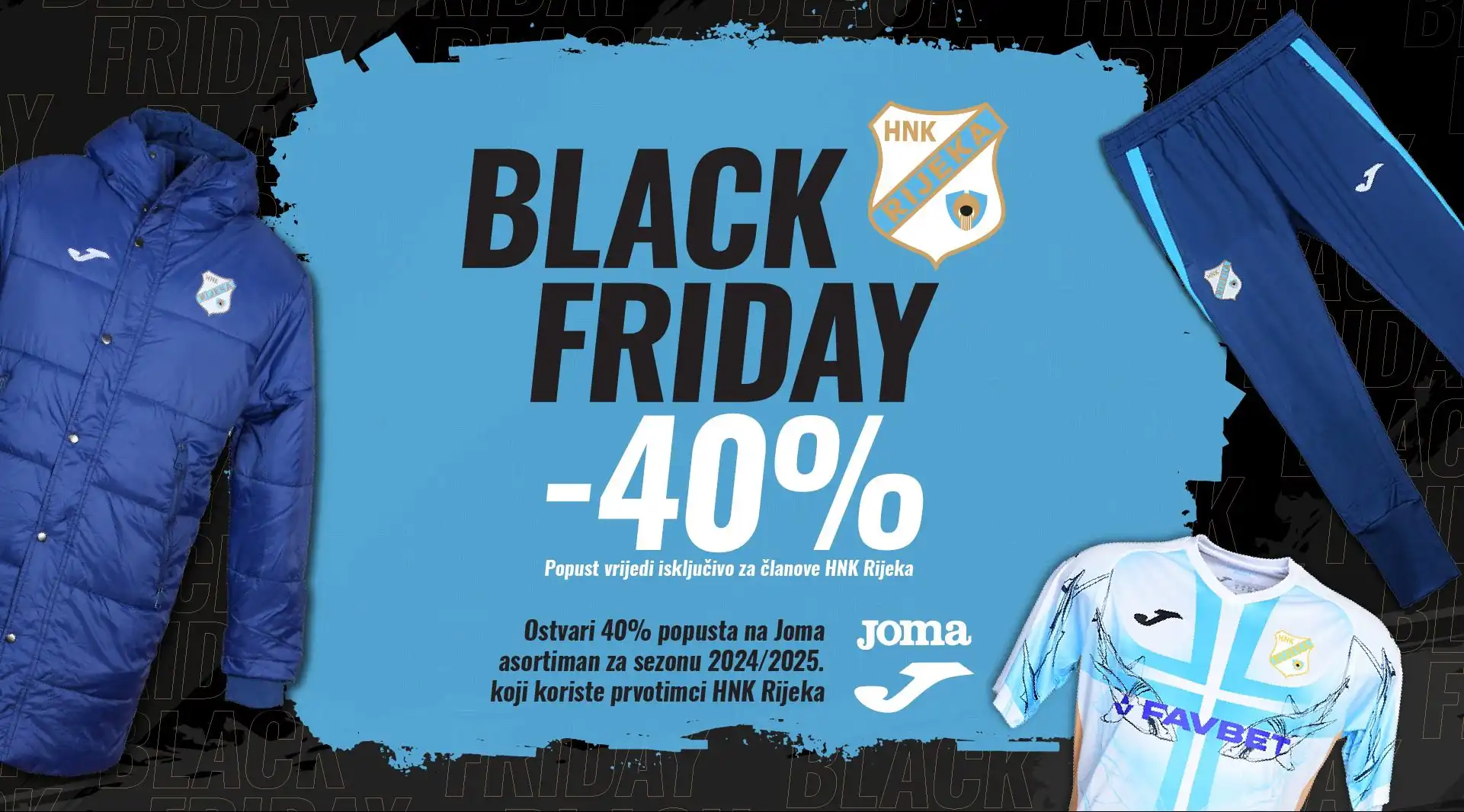 HNK Rijeka – Svim članovima HNK Rijeka mogu ostvariti 40% popusta na Joma kolekciju za sezonu 2024./2025., dostupnu u Fan Shopu i na web shopu, a koju nose prva momčad i stručni stožer HNK Rijeka