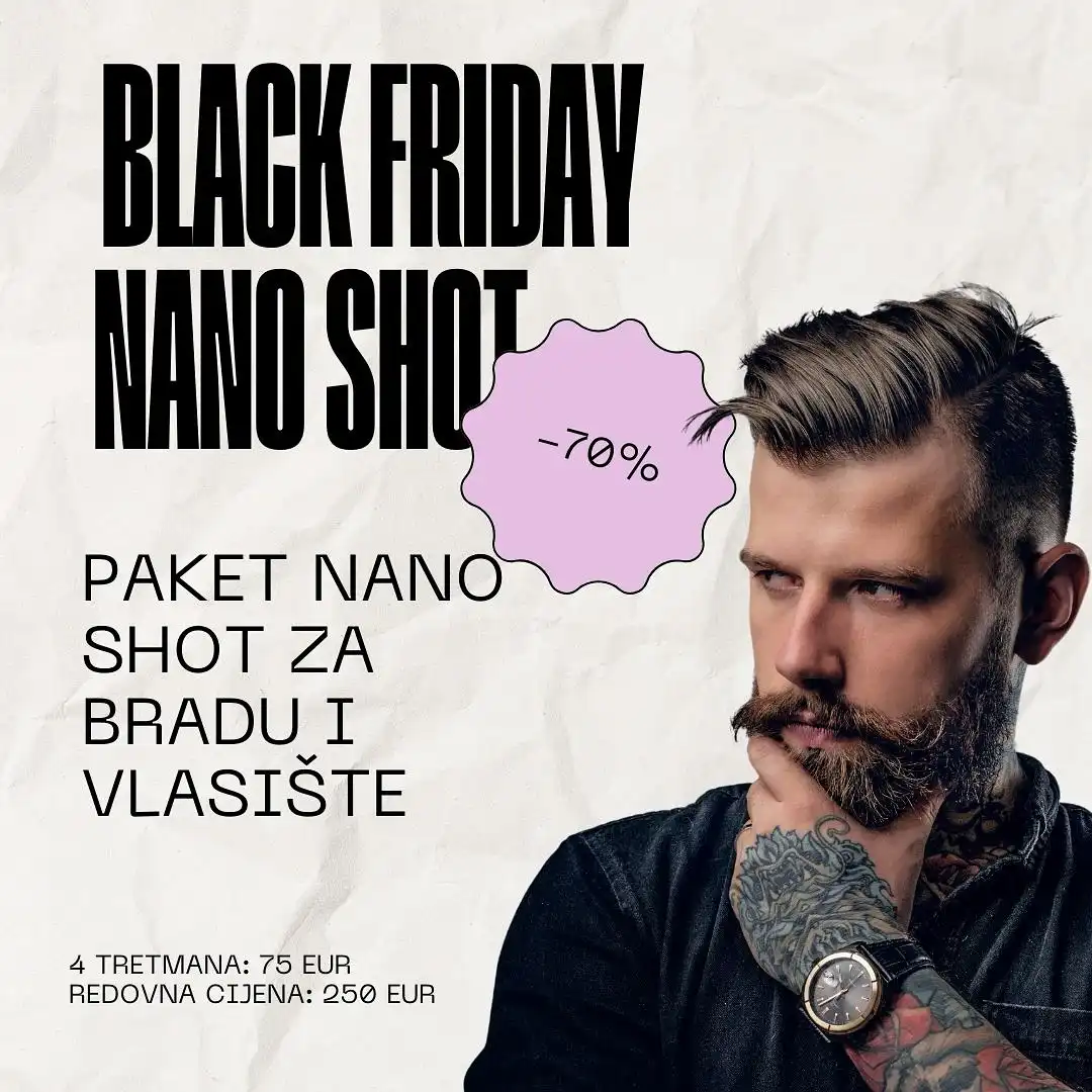 Studio Frizz na Srdočima ima 70 % popusta 4 tretmana Nano shot tretman i 4 tretmana umjesto 250 € a tko uplati u petak – cijena je 75 €.