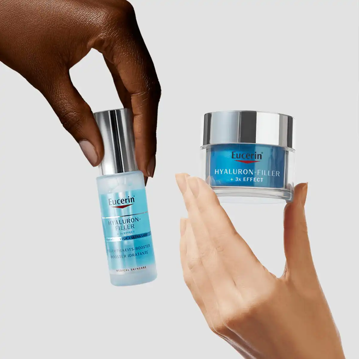 Podarite svojoj koži trenutnu hidraciju uz Eucerin Hyaluron-Filler hidratantni booster i Hyaluron-Filler hidratantni booster za noćnu njegu. Ovi iznimno lagani osvježavajući boosteri gelaste strukture imaju trostruki učinak: ispunjavaju fine linije, aktivno obnavljaju i koži trenutno pružaju vlažnost koja traje do 72 sata. Hijaluronska kiselina pomaže povećati hidraciju i učinkovito ispunjava bore. Prikladni za sve tipove kože, hidratantni i osvježavajući serumi nanose se prije dnevne, odnosno noćne kreme.