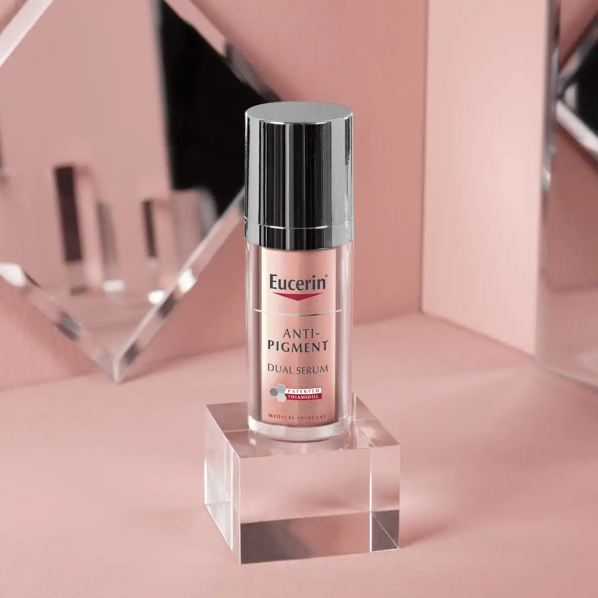 Eucerin Anti-Pigment Skin Perfecting serum i Anti-Pigment dvofazni serum za potpuno blistav ten smanjuju hiperpigmentacije i sprječavaju njihovo ponovno pojavljivanje zahvaljujući inovativnoj formuli obogaćenoj thiamidolom. Prikladni za sve tipove kože, brzo se upijaju i pomažu koži izgledati ujednačeno i blistavo.