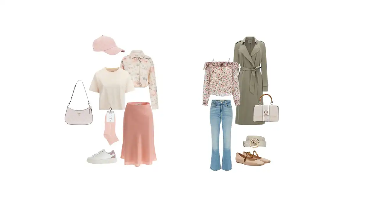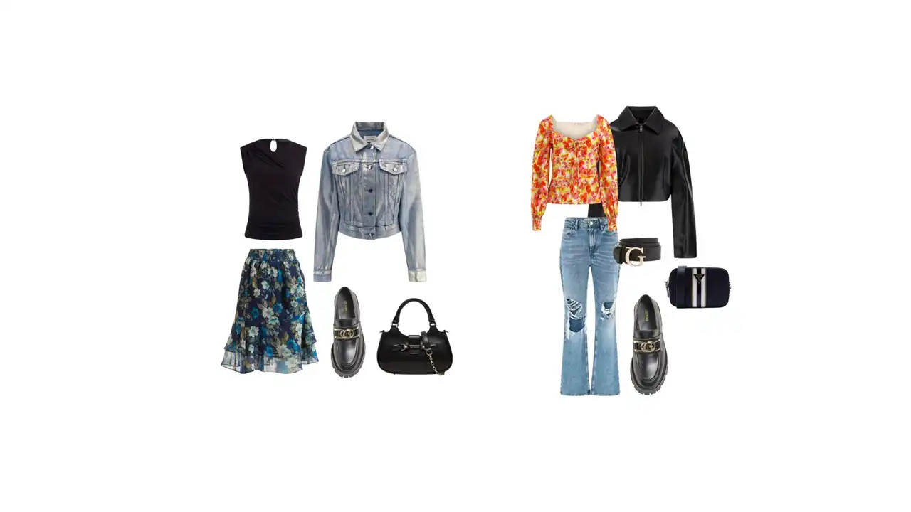 Cvjetni uzorci i pastelne nijanse vječni su simbol proljeća, no kako ih nositi da kombinacije ostanu svježe i zanimljive? Guess donosi komade koji s lakoćom spajaju romantiku i urbani stil – poput satenske suknje u nježno ružičastoj nijansi, uparene s laganom majicom i traper jaknom ukrašenom cvjetnim detaljima. Za one koji vole klasičniju eleganciju, spoj lepršave cvjetne bluze, bezvremenskog balonera i traperica stvara savršenu kombinaciju za gradsku šetnju ili jutarnju kavu.