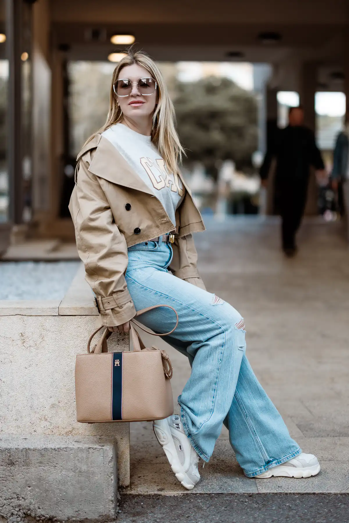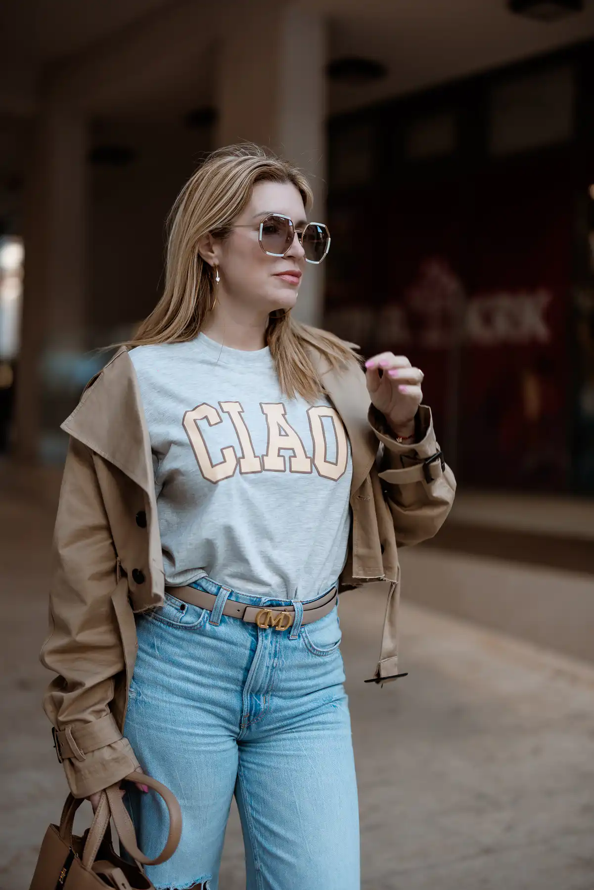 Iako više volim pisati o poslu, životnoj inspiraciji, knjigama, beauty temama, ponekad se i moda nađe na meti, na tapeti, na stranicama. Ponekad je recimo danas. Svoj stil opisala bih kao trenutnu inspiraciju u kojoj ima svega, volim poslovne kombinacije, ženstvena večernja izdanja kad život servira neke posebne prilike, ali ako sam što ja – to su traperice. Traperice i štikle, traperice i tenisice, traperice i čizme, sve može! Ovo nije outit za sastanke, planiranja, moderiranja, ovo je styling za dan pun snimanja i aktivnosti na terenu.