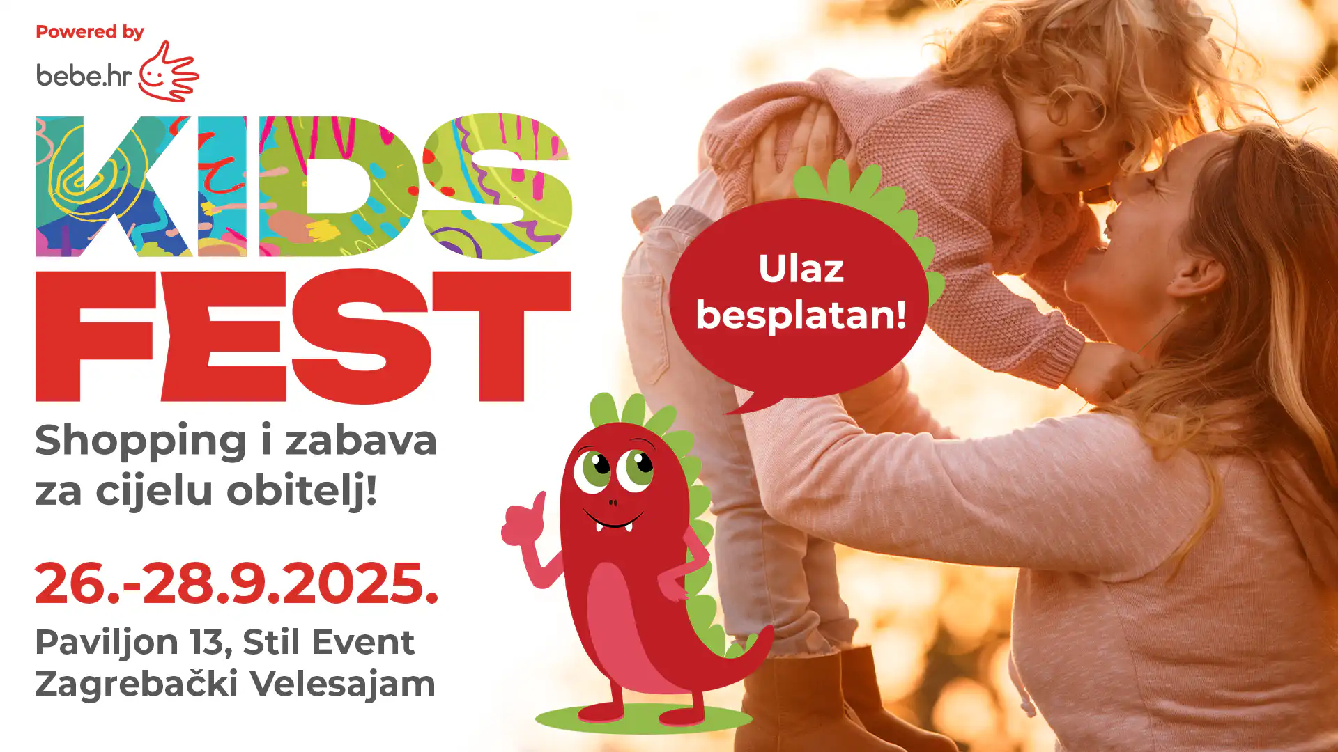Od 26. do 28. rujna 2025., Zagreb postaje središnje mjesto okupljanja djece i roditelja na prvom izdanju KIDS FESTA, powered by bebe.hr. KIDS FEST je sveobuhvatni festival koji spaja igru, edukaciju, suvremene trendove i obiteljske vrijednosti u jedinstvenom događanju posvećenom najmlađima.