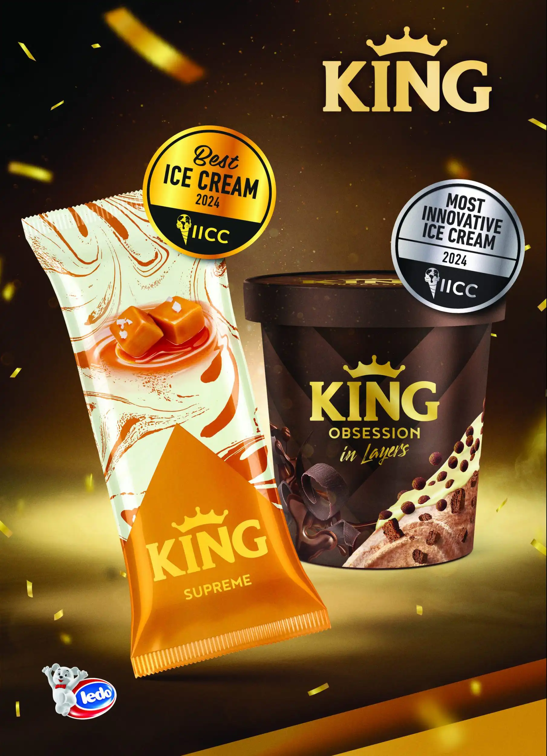 Kao član IICC-ja, udruženja koje okuplja vodeće stručnjake u proizvodnji sladoleda iz cijelog svijeta, King s ponosom nosi ove prestižne nagrade. U izuzetno snažnoj konkurenciji, savršeno usklađene kombinacije okusa, tekstura i formata sladoleda King oduševile su žiri, a prvo i drugo mjesto potvrđuju Ledovu predanost kvaliteti i inovacijama te stalno pomicanje granica u industriji.