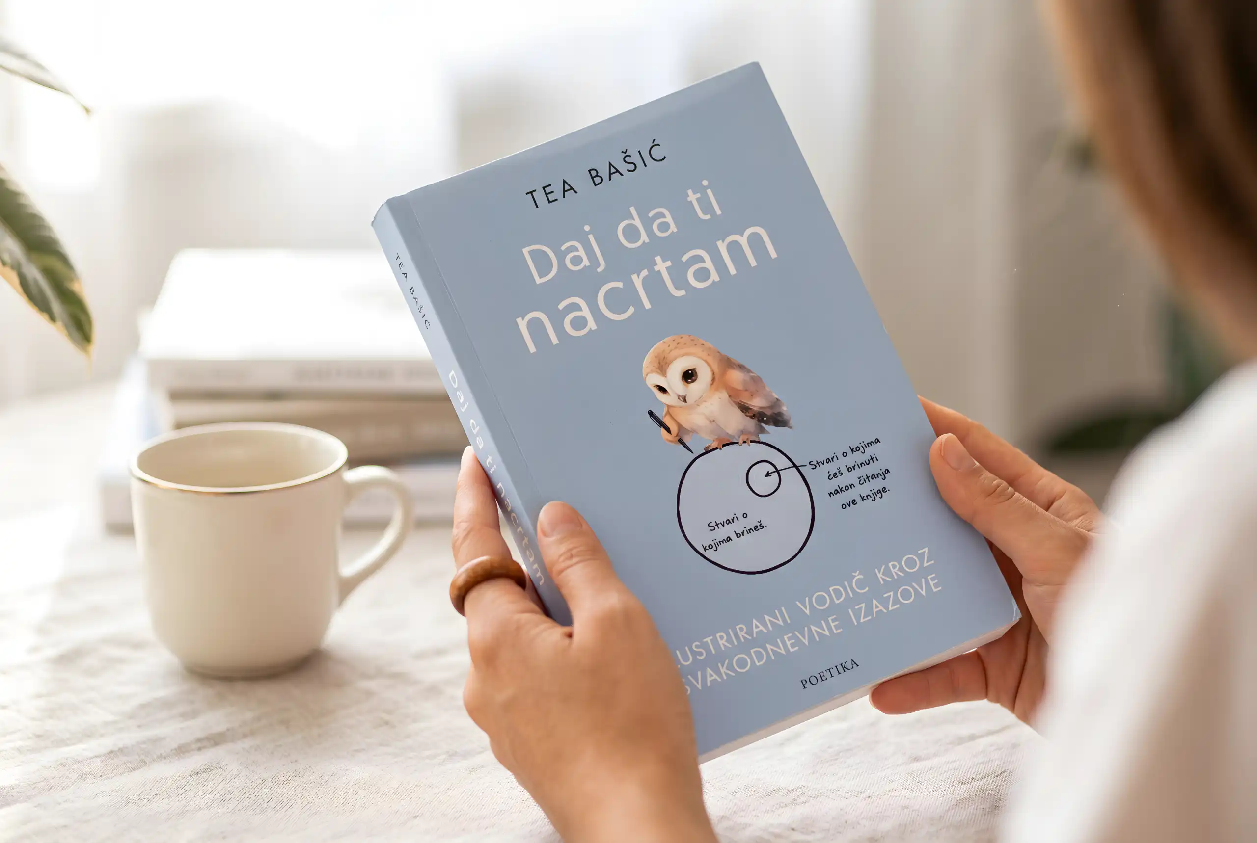 Tea Bašić je komunikologinja i edukantica psihoterapije čiji novinarski tekstovi i autorske rubrike “Daj da ti nacrtam” i “Ovotjedni podsjetnik”, kao i njezine objave na društvenim mrežama, već okupljaju publiku koja u njima pronalazi razumijevanje, jasnoću i osjećaj da u onome što prolaze nisu sami. Taj se pristup osjeti i u ovoj knjizi.