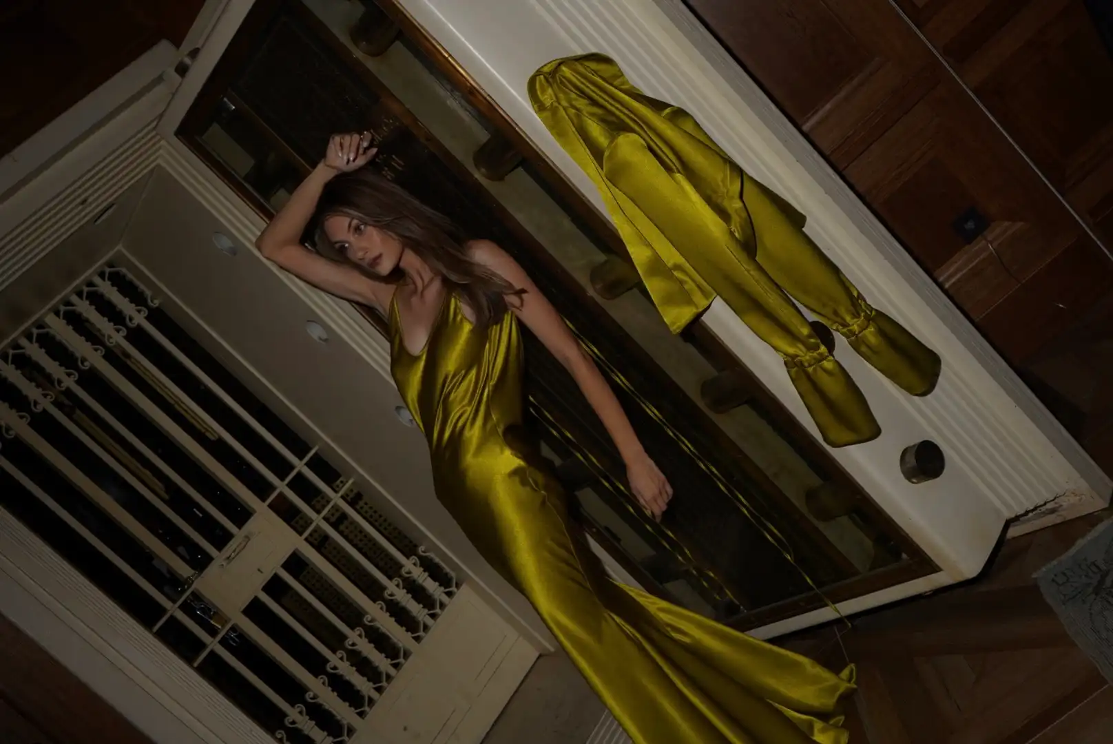 „Materijal je diktirao cijelu priču. Ovaj luksuzni tekstil ističe se time što reflektira svjetlost, nježno prati pokret tijela, ali zadržava formu“- istaknula je Kristina Burja.