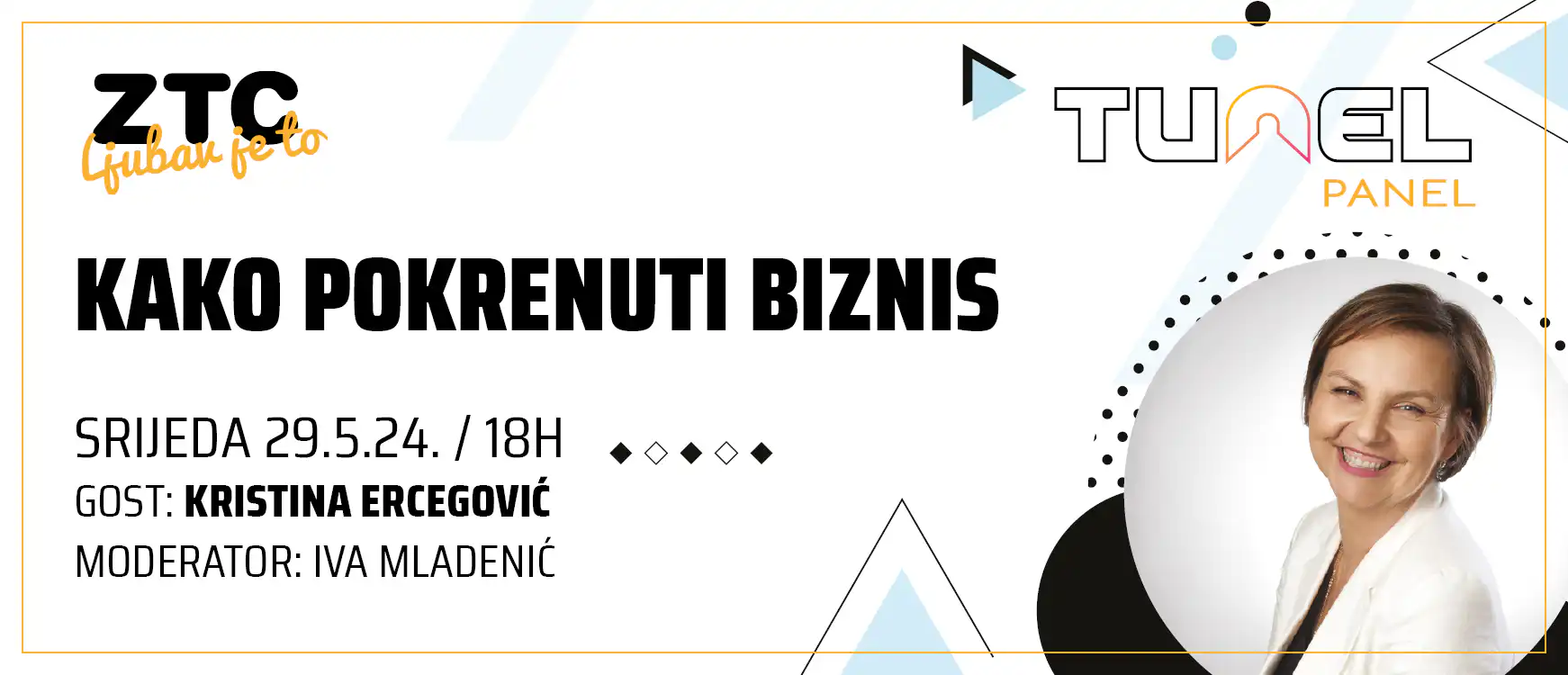 Sljedeća radionica „Tunel-panel“ obrađivat će temu biznisa. Gošća panela je Kristina Ercegović, serijska poduzetnica i poslovna savjetnica za male poduzetnike. Napisala je šest knjiga, piše kolumne i blog, vodi portal Moj novac te istoimenu FB grupu koja broji preko 11 tisuća članova, organizira konferencije, radionice o novcu… Čest je gost na raznim poslovnim konferencijama, predavač na različitim učilištima i akademijama te mentor i poslovni influencer. Koautorica je prvih stručnih knjiga o mystery shoppingu te knjige Tajna nestalog kupca. Autorica je knjiga koje promiču poduzetništvo. To su: Sam svoj gazda – kako uspjeti u poduzetništvu unatoč svemu i svima, Najjači si kad si svoj – ljudska strana biznisa, Ne radi se o novcu – radi se o nama.
