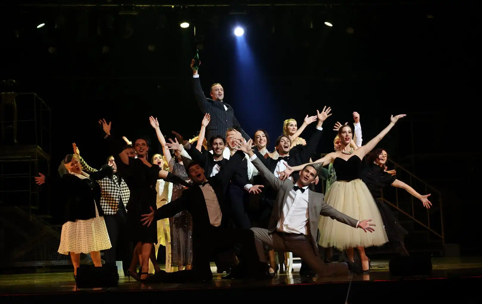 Uz Leonoru Surian Popov i Damira Kedžu, čije će uloge kasnije u sezoni igrati i Jasna Bilušić te Matija Kačan, u rujanskim izvedbama nastupaju brojni riječki kazališni umjetnici. U ulozi Betty Schaefer Elena Brumini, u ulozi Maxa von Mayerlinga Robert Kolar, u ulozi Artija Greena Marko Fortunato i Andrea Tich u alternaciji, u ulozi Cecila B. DeMillea Aleksandar Cvjetković te doista brojni drugi glumci, pjevači i plesači riječkog „Zajca“.