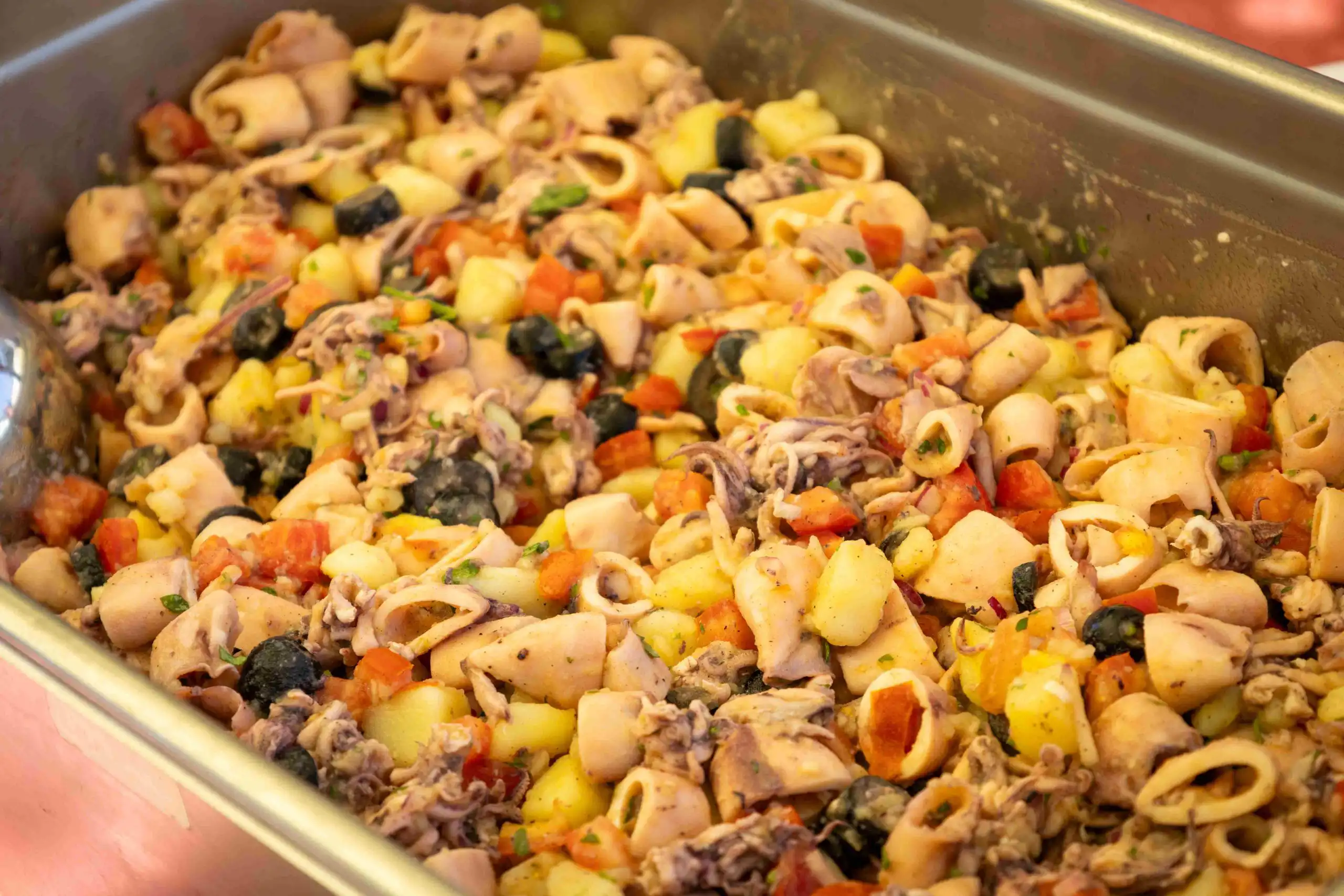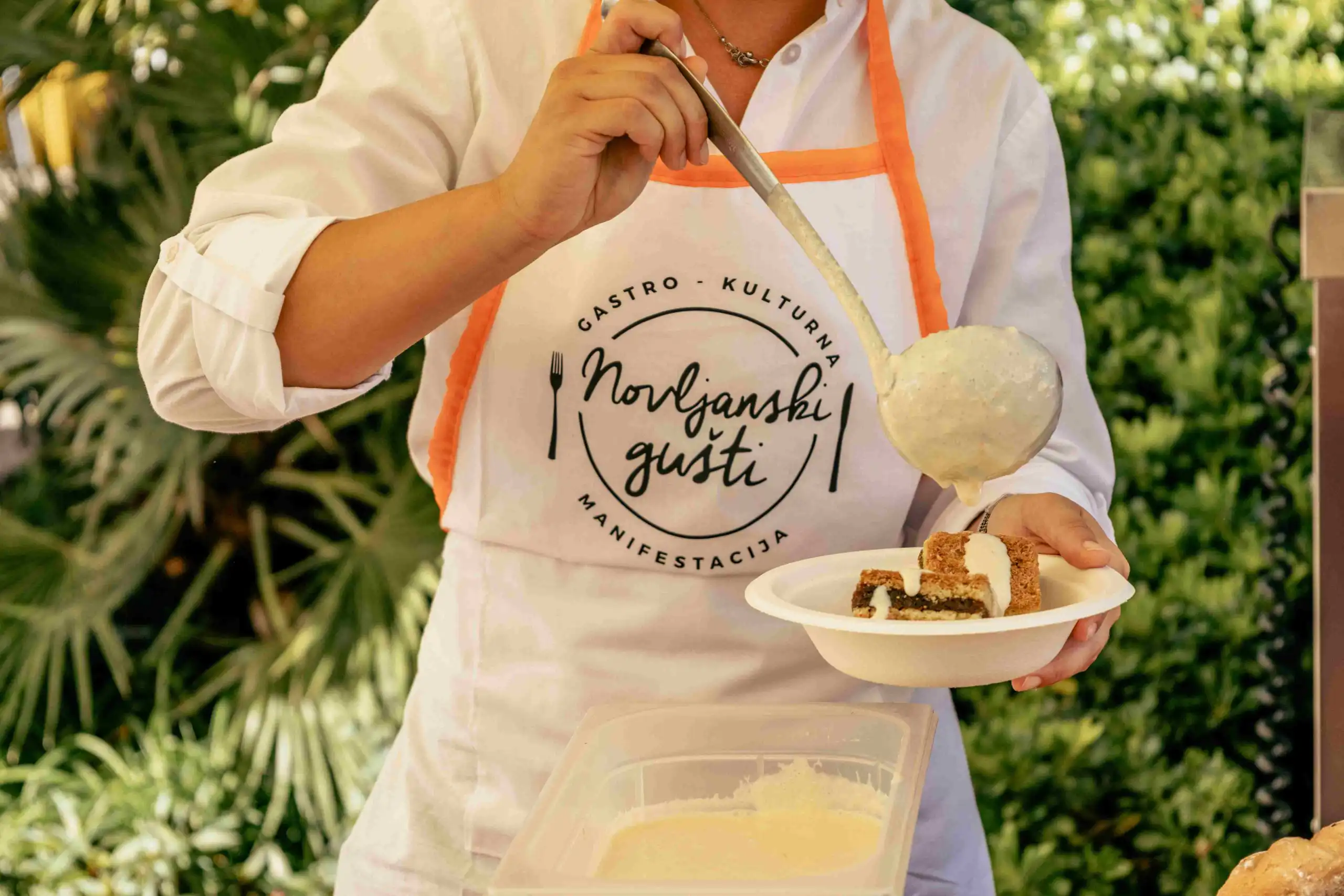 Na meniju se našlo „sve što srce poželi“ – od salate od lignji na primorski način i paštete od tune, preko škampi i dagnji na buzaru, mrkača na saft s palentom, sipe iz teće, brudeta od inćuna sa slanutkom i palentom, pa sve do medaljona od jadranskih kozica u umaku od pjenušca s rižotom od naranče te šufiganih liganja s bobom i palentom. Ljubitelji mesa uživali su u pljukancima s junećim gulašom, ukrajinskim sarmicama s heljdom i junetinom te mađarskom perkeltu. Slatki dio ponude bio je jednako bogat – millefoglie, ricotta sa smokvama, tiramisu, palačinke, domaće pite i štrudle, među kojima i posebna štrudla od smokve, a za prave sladokusce i popularna ukrajinska torta Medovik.