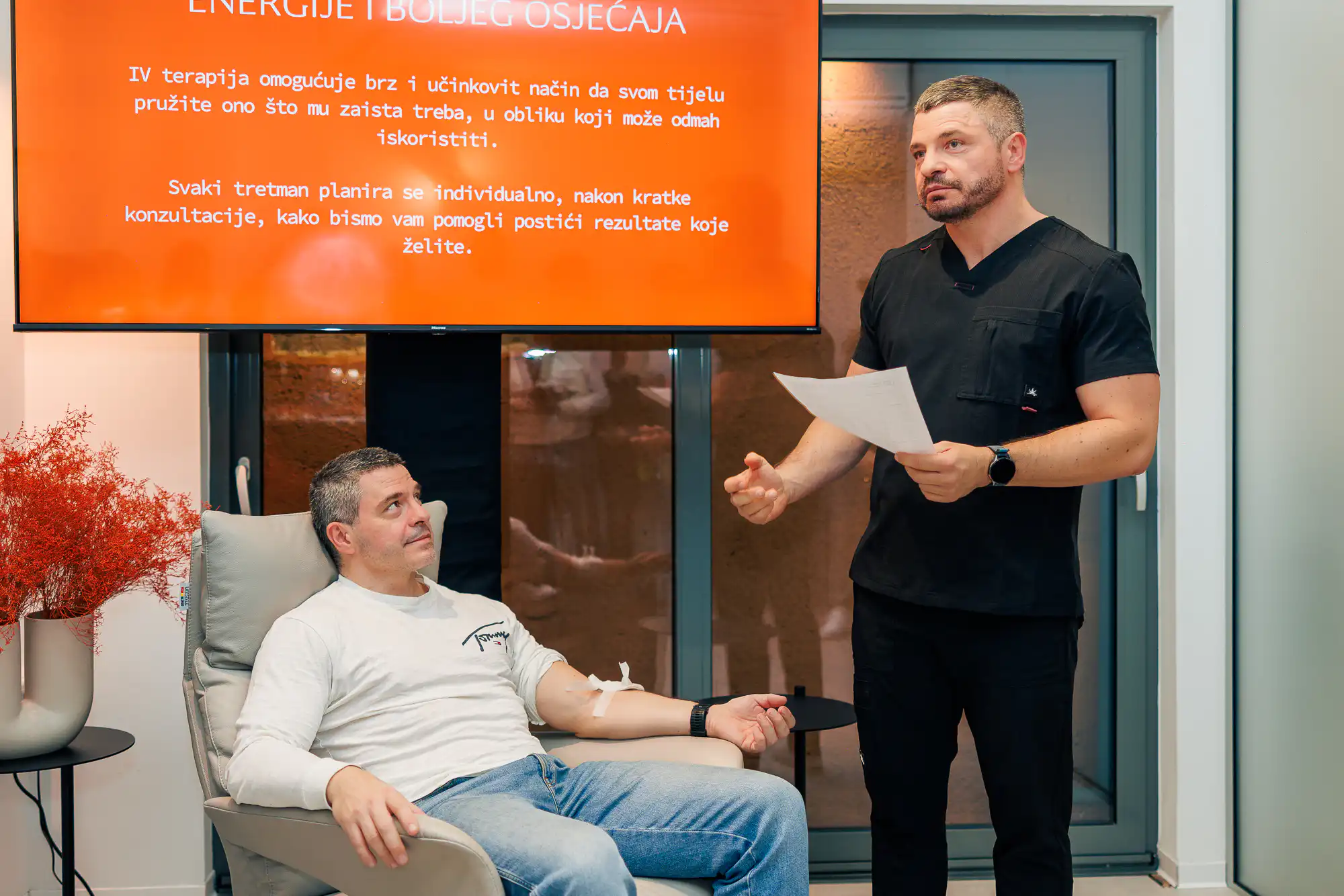 U drugom dijelu večeri, dr. Davor Radić objasnio je zašto se sve više ljudi okreće intravenoznim boosterima. Govorio je smireno i vrlo jasno, bez kompliciranja. ‘Tijelo zimi troši više energije i brže ulazi u deficit. Intravenozni booster jednostavno omogućuje da ono što nedostaje dođe na pravo mjesto odmah. Zbog toga se promjena često osjeti brzo,’rekao je.