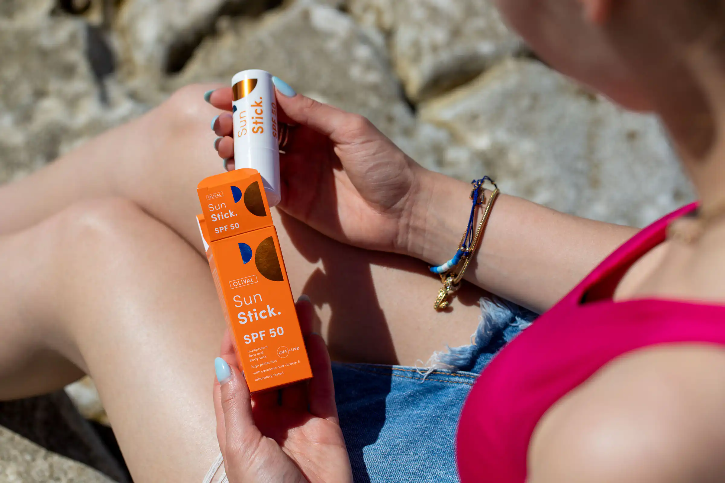 SunStick. Multiprotect za zaštitu od sunca SPF 50 nemasni je stick koji ostavlja transparentan mat finiš na koži i u potpunosti bez bijelih tragova ili masnih ostataka. Namijenjen je visokoj zaštiti najizloženijih i posebno osjetljivih dijelova lica i tijela od UVA i UVB zračenja, a obožavaju ga rekreativci, sportaši i svi koji puno vremena provode na otvorenom kada je lice najviše izloženo suncu. Pogodan je i za zaštitu tetovaža ili sličnih dijelova kože koji traže posebnu njegu i pažnju (uši, nos, madeži, područje nadusnice), a može se koristiti i za obnavljanje (reaplikaciju) zaštite kroz dan, u gradu ili na plaži.