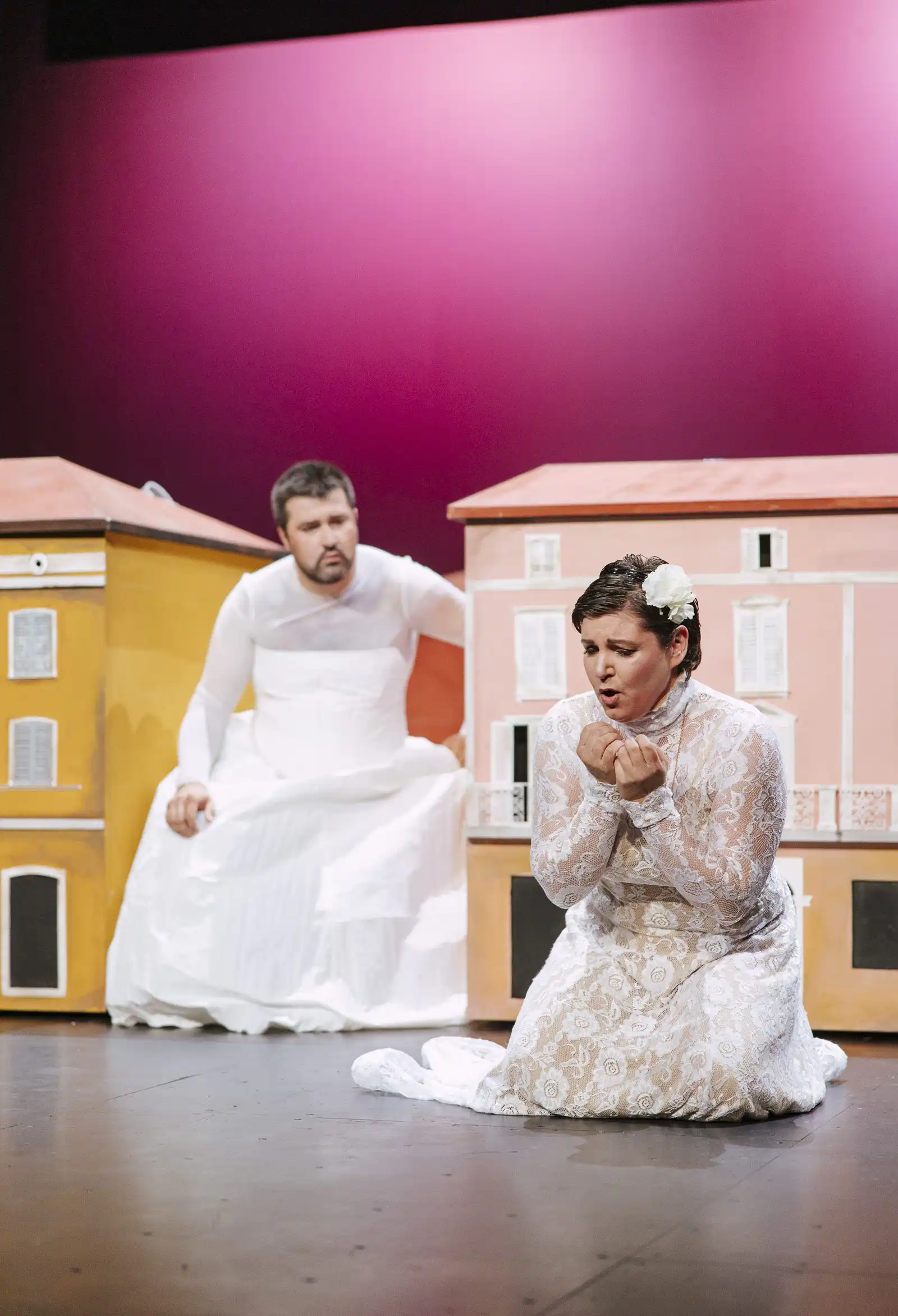 „ U romantično-nostalgičnoj scenografiji Alana Vukelića likovi ove operne drame postaju veći i od kuća, dok začudni kostimi Sandre Dekanić ironično raskrinkavaju habitus i korpus onoga što i onih koje nazivamo i smatramo – muškim/a. U magično-realističko tkivo predstave utkali smo odlučnu kritiku patrijarhalnog sustava vrijednosti koji ženu, napose mladu, svodi na objekt svadbene transakcije“, ističe Marin Blažević.