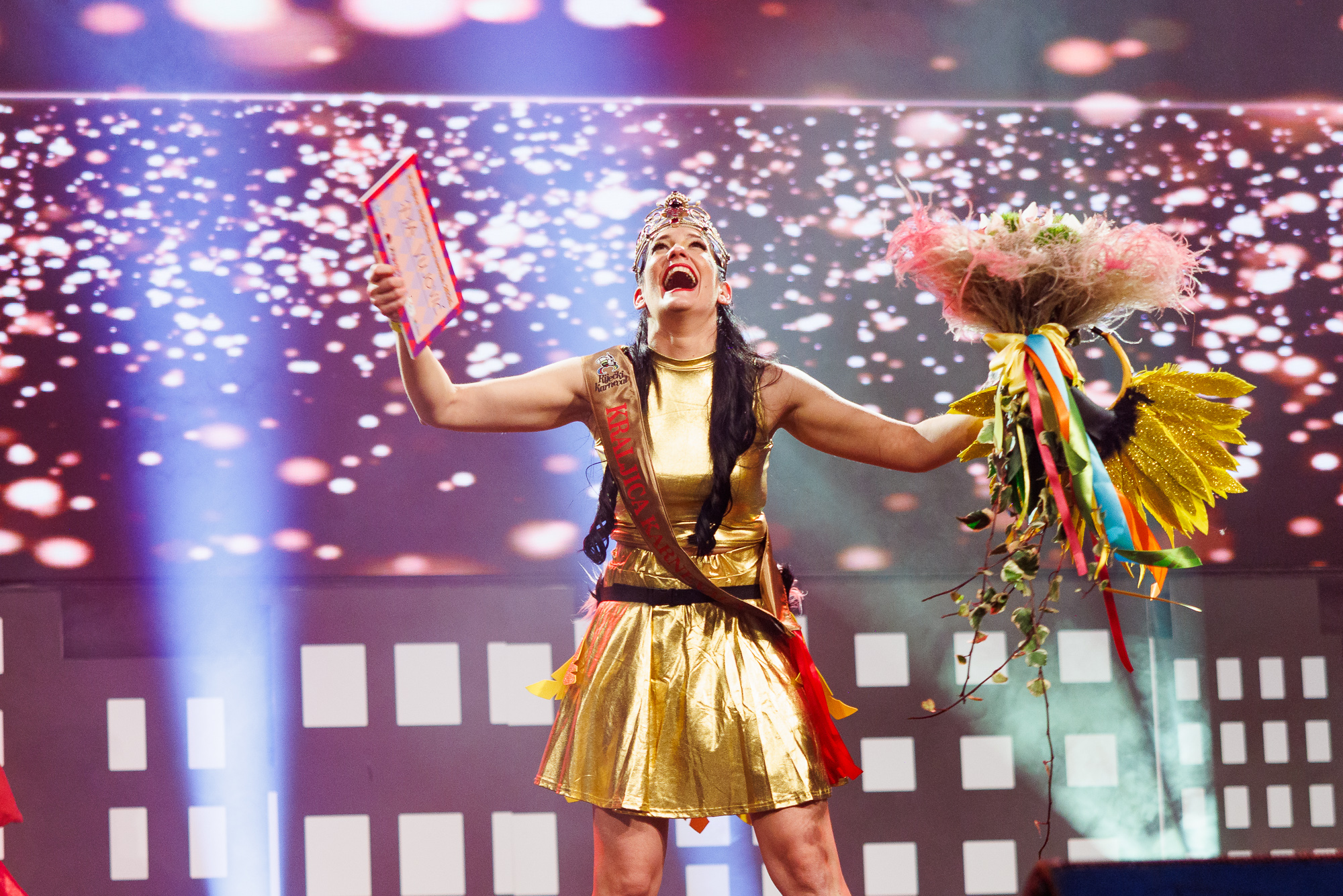 Jučer je u Dvorani Mladosti Riječki karneval okrunio novu Kraljicu – Pia Vujović iz karnevalske grupe Siti i pijani ponosno će vladati narednih godinu dana uz Meštra Sandija! Sedam kandidatkinja odmjerilo je svoje snage u prepunoj Dvorani Mladosti, a završnu riječ imao je žiri koji je odlučivao koja od njih je najbolja poznavateljica karnevalske tradicije te koja posjeduje najviše šarma, duhovitosti i plesnog umijeća. U karnevalskom žiriju bila je Kraljica Riječkog karnevala 2025. Nora Marčelja te, po prvi puta, predstavnici 30-ak karnevalskih grupa članica Riječke udruge karnevalista. Simpatije žirija dobile su i Iva Špegar iz udruge Mesopustari Kraljevice, koja je odnijela titulu prve pratilje, i Antonija Jurlina, predstavnica karnevalske grupe Draške maškare, koja je večeras postala druga pratilja.