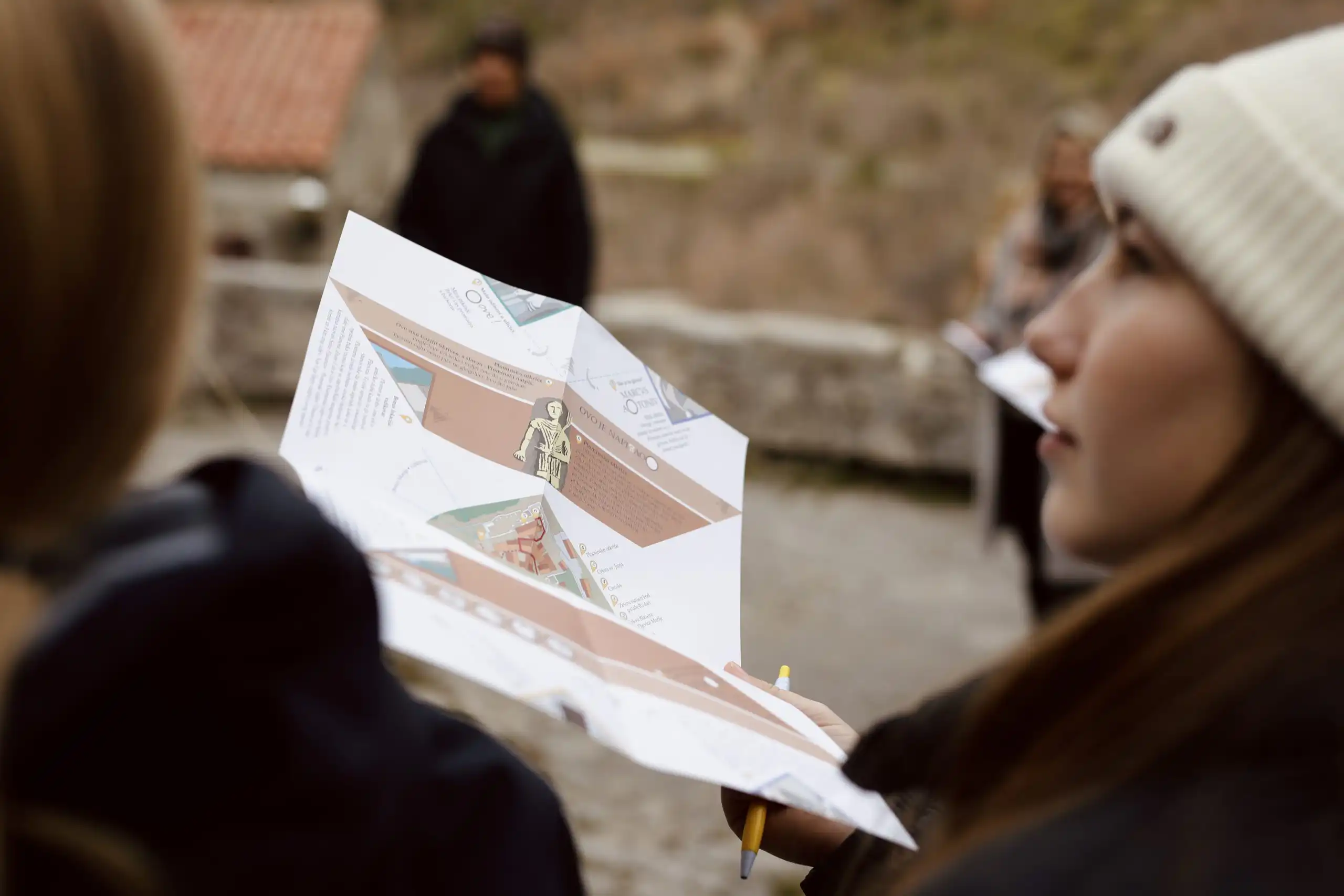 Središnji dio projekta je interaktivni letak izrađen na recikliranom papiru, koji vodi posjetitelje u otkrivanje tajni starog grada Plomina. Letak je osmišljen kao spoj zabave i edukacije – ispunjen je zagonetkama i pitalicama koje potiču promatranje skrivenih detalja unutar srcolikog tlocrta grada. Iva Silla se osvrnula na proces osmišljavanja letka: „Odlučili smo jedan naizgled običan letak preobraziti u zaigranu uspomenu kroz interaktivno istraživanje Plomina. Na svakoj lokaciji potrebno je savinuti papir na označenom mjestu. Kako svijamo papir, tako se pred našim očima otkrivaju nove zagonetke i zanimljivosti. Na samom kraju istraživanja – eto nam brodića od papira, a ako smo sve dobro riješili, trebali bismo imati i idealan naziv za taj brod. Čak i stvaranje ovakve slagalice bilo je jedno zaigrano iskustvo uz podršku dizajnera Valtera Stojšića koji je objeručke prihvatio izazovan zadatak. Nadam se da ćete se odvažiti za ovaj neobičan način upoznavanja Plomina, putem saznati brojne zanimljivosti te se oduševiti plominskim otkrićima.“