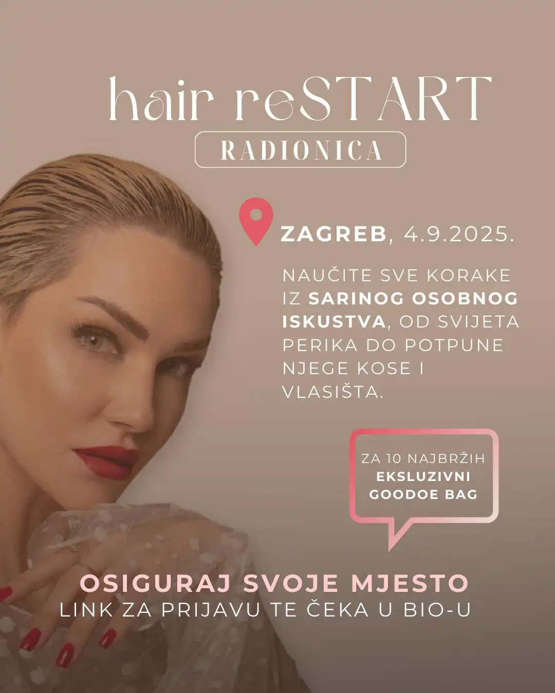 „Gubitak kose nije samo estetsko pitanje. To je iskustvo koje duboko utječe na samopouzdanje, mentalno zdravlje i kvalitetu života. Moj cilj je pružiti podršku, znanje i alate koje sam i sama priželjkivala na početku svog puta“, poručuje organizatorica.