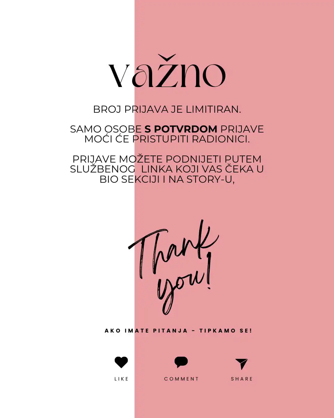 Prijave se zaprimaju isključivo putem linka: https://docs.google.com/forms/d/e/1FAIpQLSdu8GmjgxgTOI0hdAG6Wv3rWm_HjJCt6-uh3iR3TWyKDTCcag/viewform