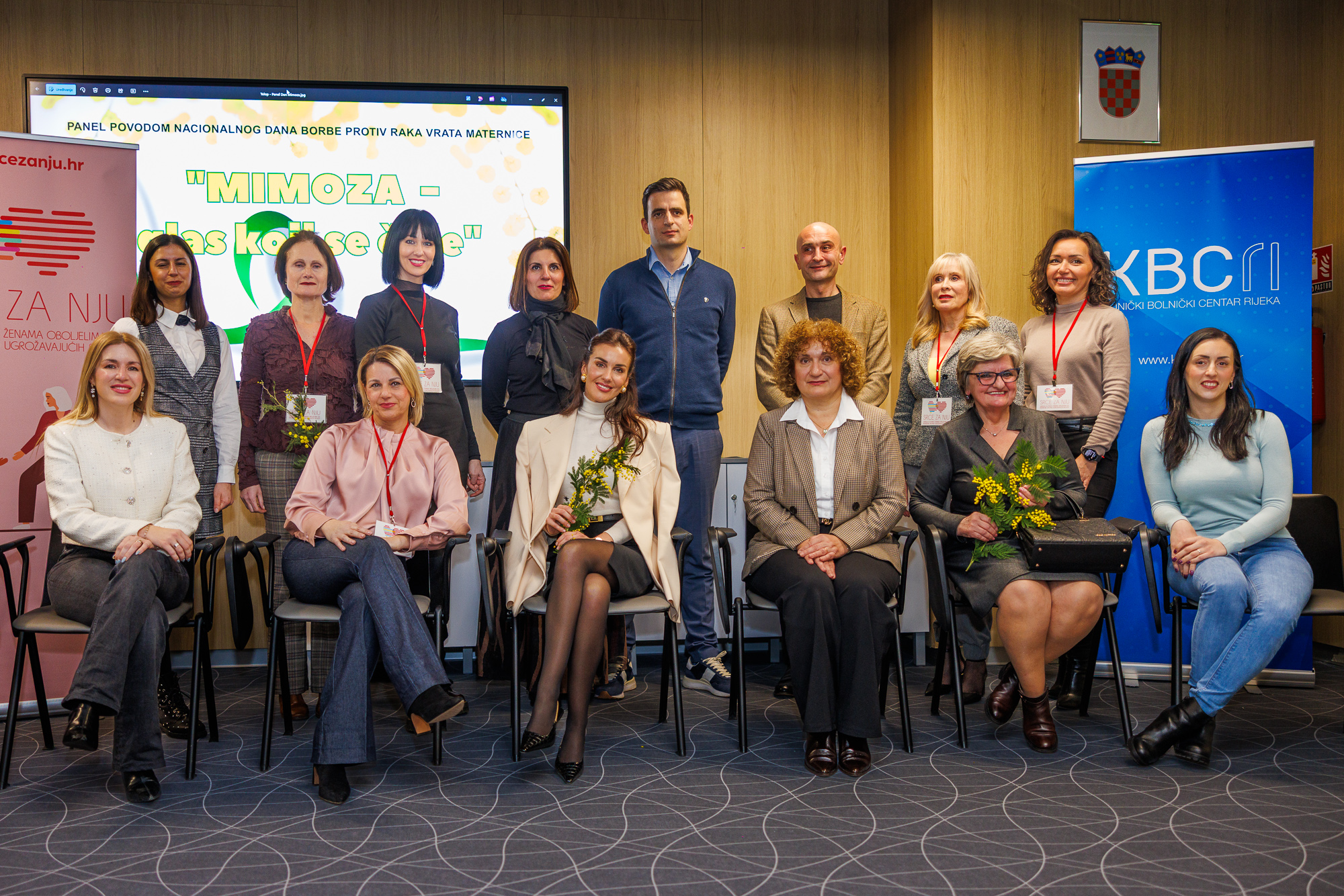Jučer je održano događanje u organizaciji Klinike za ginekologiju i porodništvo KBC-a Rijeka uz podršku Udruge Srce za nju posvećeno podizanju svijesti o prevenciji raka vrata maternice, jedne od rijetkih zloćudnih bolesti koja se može spriječiti i otkriti na vrijeme. Unatoč dostupnim preventivnim pregledima i nacionalnim programima, velik broj žena ih još ne koristi, zbog čega je cilj ove inicijative ohrabriti žene na brigu o vlastitom zdravlju i potaknuti otvoren razgovor o prevenciji. Mimoza je s vremenom postala simbol ove incijative jer je kao cvijet ranjiv, nježan, ali i snažan, otporan, baš kaš je svaka žena.