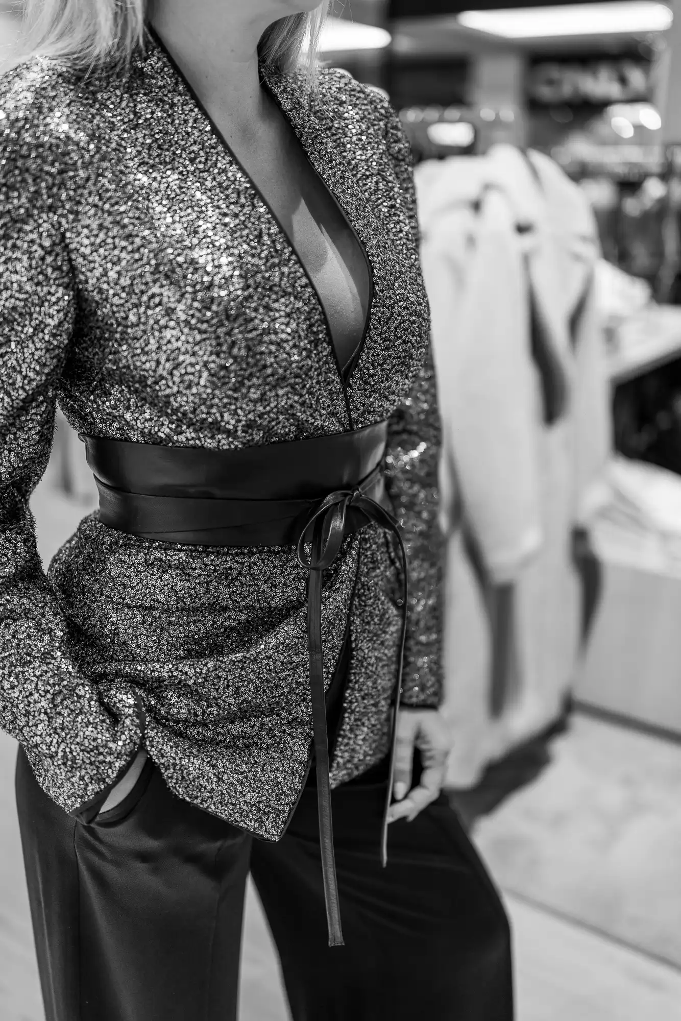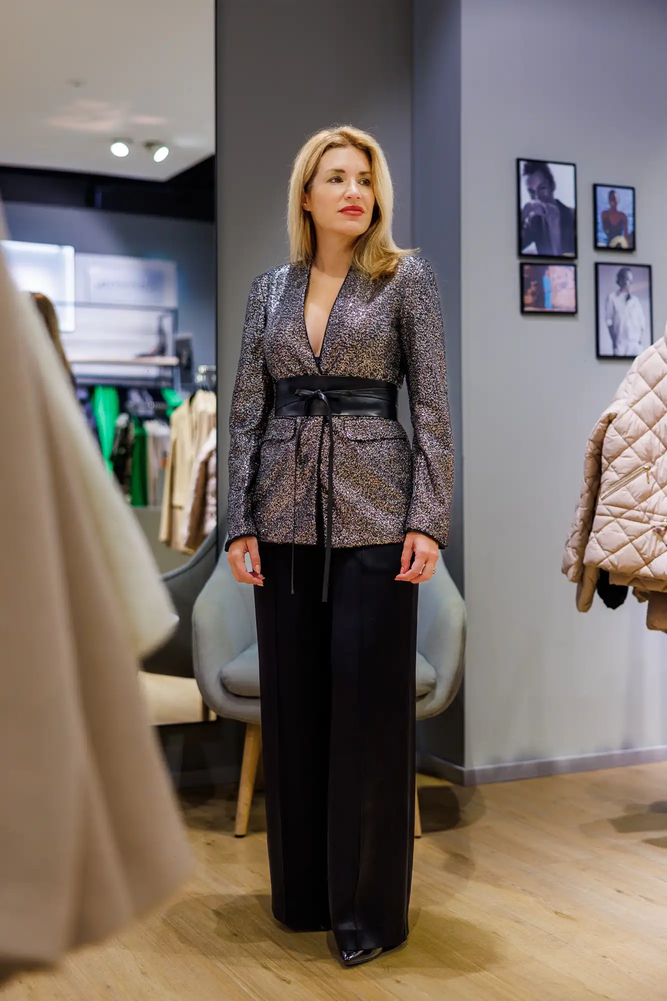 Ova je kombinacija izazvala najviše pažnje! Istaknite se u smjelom kompletu, hlače će se lako uklopiti u sve vaše fine kombinacije, a sako je san snova! Šljokičasta rapsodija! Dodajte i remen koji će istaknuti struk i spremni ste! Prosinac, čekamo te!