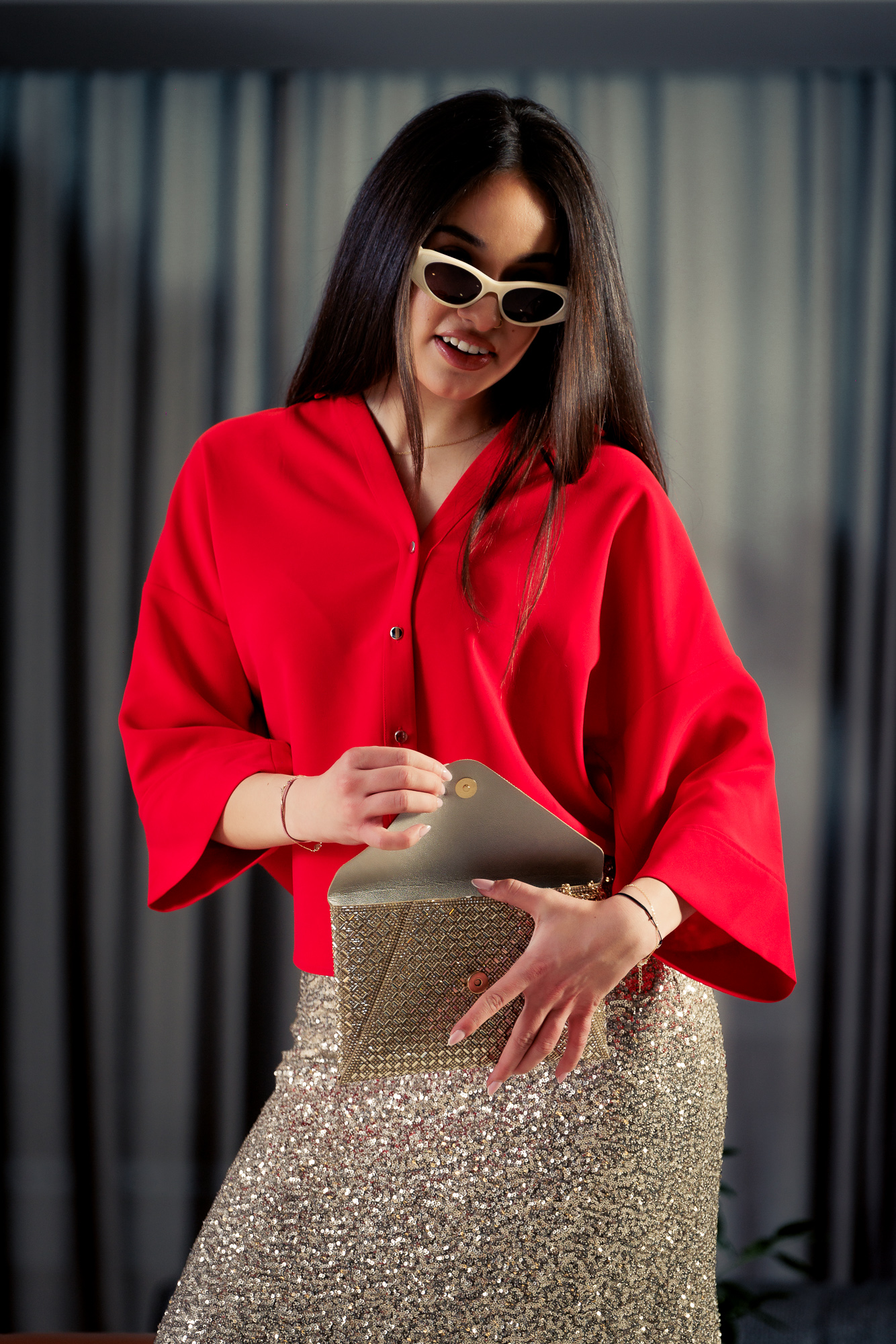 Baza svega su noviteti koje smo pronašli u trgovini s.Oliver, suknja koja super prati statement dnevna izdanja i naravno uklapa se u večernje kombinacije. Crvena košulja je odličan komad odjeće jer će lako pratiti brojna izdanja. Tenisice su iz nove kolekcije trgovine Mass kao i torbica koja je isto komad koji vrijedi imati. Naočale su bezvremenski klasik iz Ghetaldus Optike.
