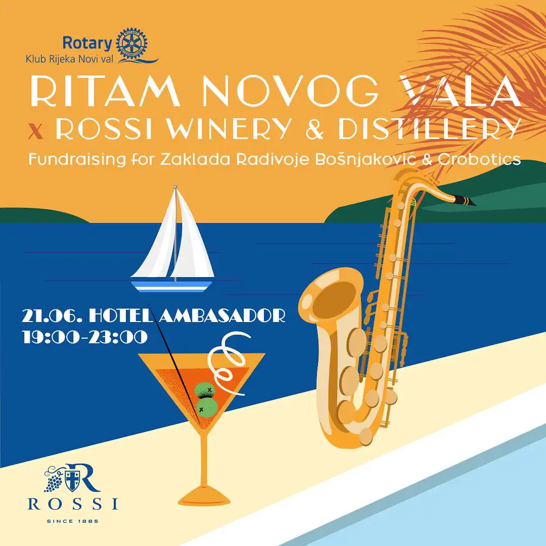 Ambiciozni i već nadaleko prepoznatljivi riječki Rotary klub Rijeka Novi val i ove godine organizira pravu ljetnu poslasticu u Opatiji! Za ovaj ljetni event udružene su snage s poznatim istarskim vinarom Rossi Winery̨&Destillery iz Vižinade, te ovog petka 21.6. s početkom u 19h u hotelu Ambasador očekuje vas pravi ljetni party pod nazivom „Ritam Novog Vala.“