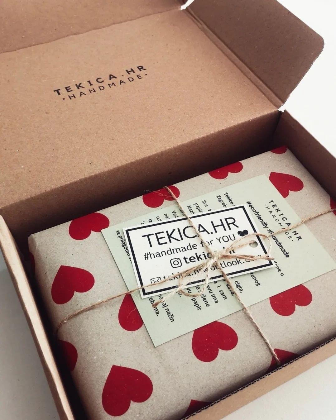 Proizvode pakiramo u reciklirani ukrasni papir i uvijek pazimo da je svaki detalj na mjestu. Želimo da se svaki kupac razveseli paketu jednako kao što smo se i mi njihovoj narudžbi.
