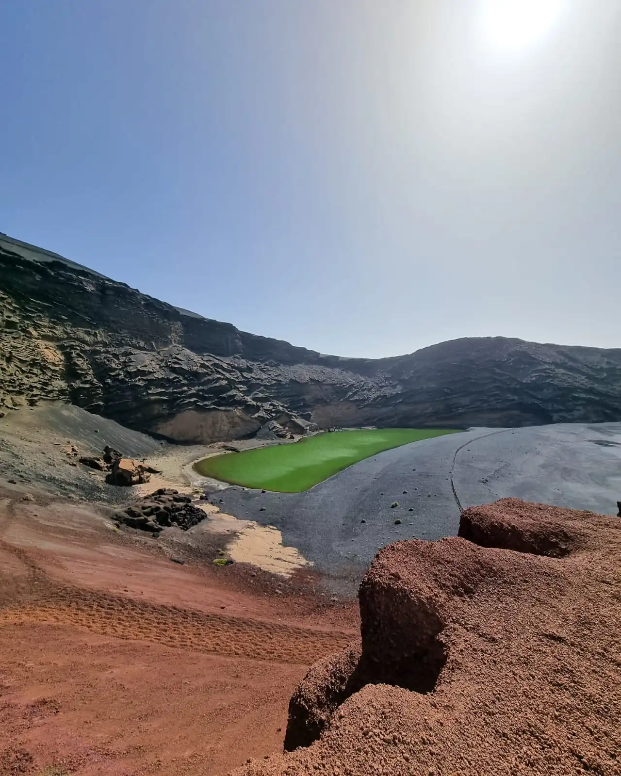 Charco Verde, nevjerojatno zeleno jezero u krateru vulkana, koje od oceana dijeli crna plaža.
