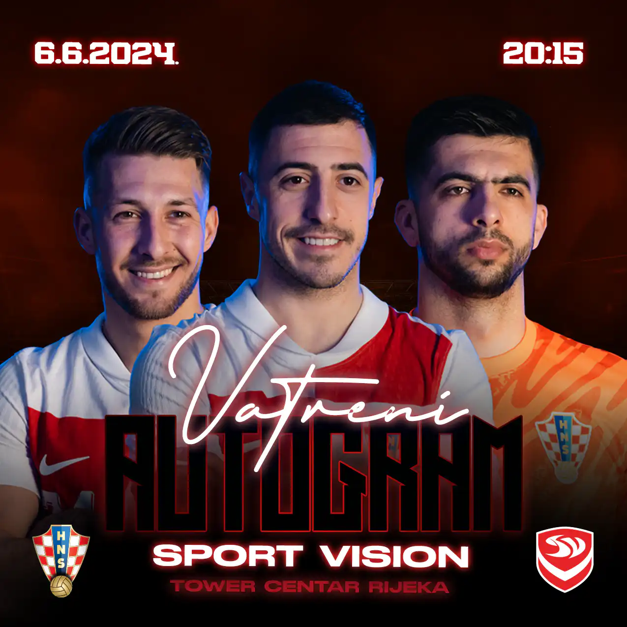 Danas, 6. lipnja, u trgovini Sport Vision na 3. katu Tower Centra Rijeka, održat će se posebno događanje koje će oduševiti sve ljubitelje nogometa. Druženje s fanovima, fotografiranje i potpisivanje dresova bit će moguće od 20:15 do 21:00 sati.