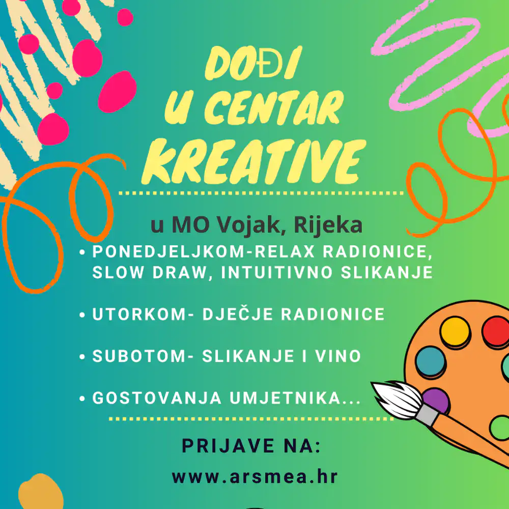 U MO Vojak, Mihanovićeva 1b (pokraj bistroa Paris) u Rijeci, od 1.10. 2024. kreću kreativne radionice za djecu i odrasle, a na rasporedu su ponedjeljkom, utorkom i subotom od 18 do 20 sati.