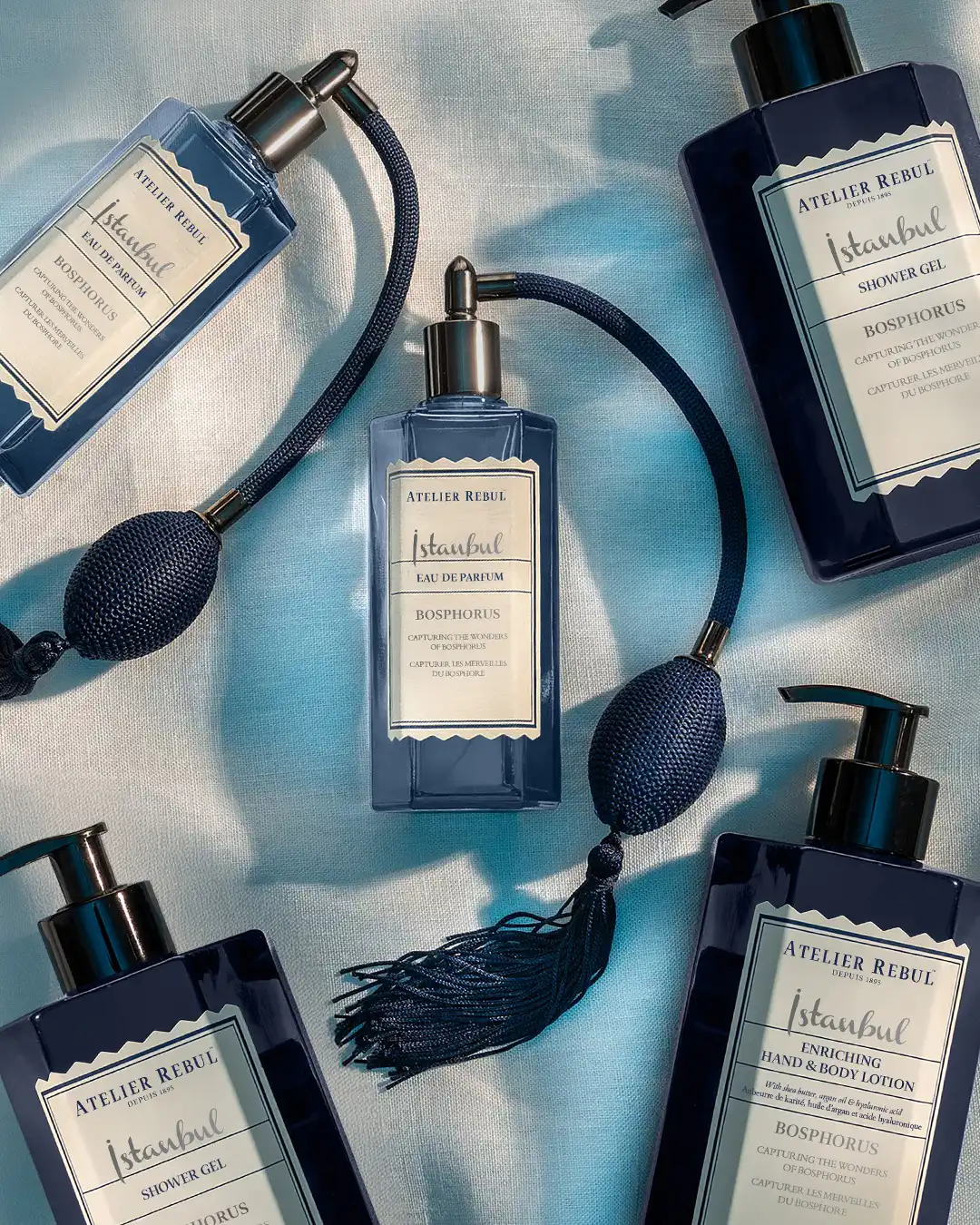 Cijela kolekcija Istanbul Bosphorus osmišljena je kao potpuni ritual – od mirisa za dom (difuzori i svijeće), preko luksuznih proizvoda za njegu tijela (gel za tuširanje, losion, sapun), do signature parfema. Svaki proizvod nosi jedinstvenu mirisnu priču koja evocira prizore s Bospora – plavetnilo mora, cvjetne vrtove, zlatne zalaske i bogatu kulturu koja se proteže kroz stoljeća.