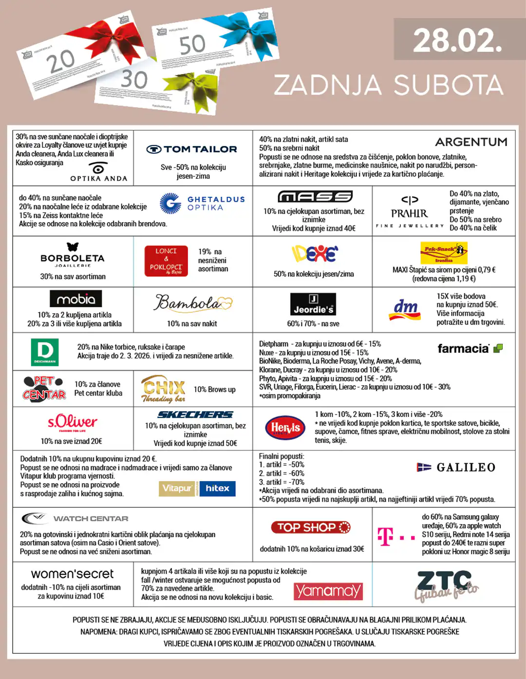 - Hervis – do -20% na odabrane artikle (1 kom -10%, 2 kom -15%, 3 i više -20%)